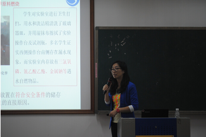 提出报告,设备处特邀请北京五洲东方科技发展有限公司的禹菡冰老师在工3-208展开了针对本院研究生的《实验室安全防护》讲座。 讲座内容主要包括:1. 实验室常见的安全隐患及案例;2. 常规安防设备的应用;3. 实验室空气环境的控制与防护;4. 危险化学品的存放。禹老师以各种典型案例进行讲解,内容丰富、生动。学院研究生也积极参加,并认认真真做笔录。总之,这次的讲座使研究生初步认识到实验室安全的重要性,达到了提高研究生的实验室安全意识效果,为后续的实验室科研工作打下基础,有利于实验室的安全管理。