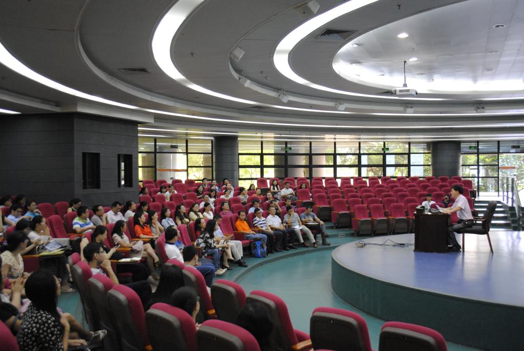 在圆弧报告厅召开了全院大会,全院教职工参加了此次会议。