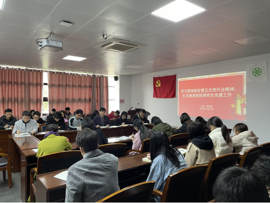 在工四202会议室召开了研究生党建工作会议,学习传达学校第五次党代会精神。学院党委书记周东斌作了题为“学习贯彻学校第五次党代会精神,扎实推进研究生党建工作”的专题党课。学院团委书记张明、青年百人党员骨干教师、研究生辅导员陈晓雪老师、研究生全体党支部书记及支委等参加了会议。