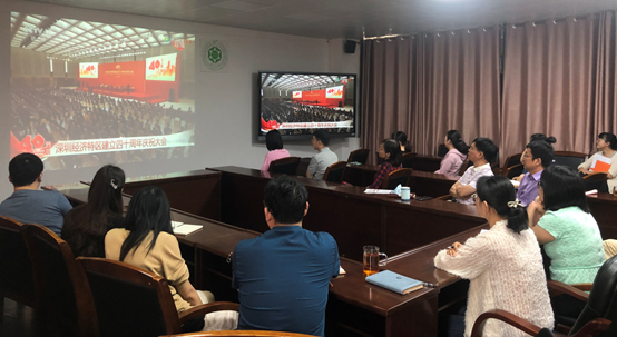 20201014日上午1030,深圳经济特区建立40周年庆祝大会在广东省深圳市隆重举行,习近平等党和国家领导人出席。贝勒漫画 党委组织师生代表在工学四号馆202集体观看深圳经济特区建立四十周年庆祝大会直播,学院领导、党支部书记、师生代表集中观看,其余师生以所在党支部集体收听收看、个人收听收看的形式进行大会学习。