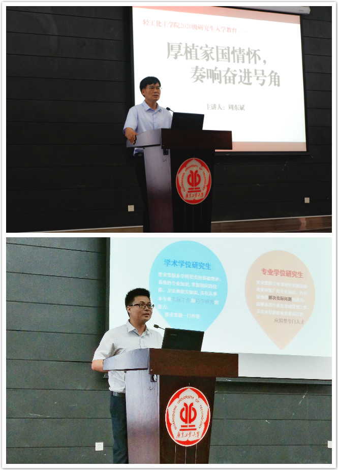 入学仪式结束后,大会进入第二部分:入学教育。周东斌书记为新生作了题为“厚植家国情怀,奏响奋进号角”的思政课。周东斌从今年的新冠肺炎疫情发生,对比美国情况,到现在我国夺取了抗疫斗争重大战略成果,充分说明社会主义制度的优越性,告诉大家要珍惜来之不易的成果,并启发同学们从“为什么读研、是否了解研究生生活、如果度过研究生生活”三个问题思考自己读研的目标与规划,同时,用“理想信念、家国情怀、潜心学问、遵纪守法、持之以恒”五个关键词对同学们提出了要求,勉励同学们努力成为又红又专的社会主义建设者接班人。