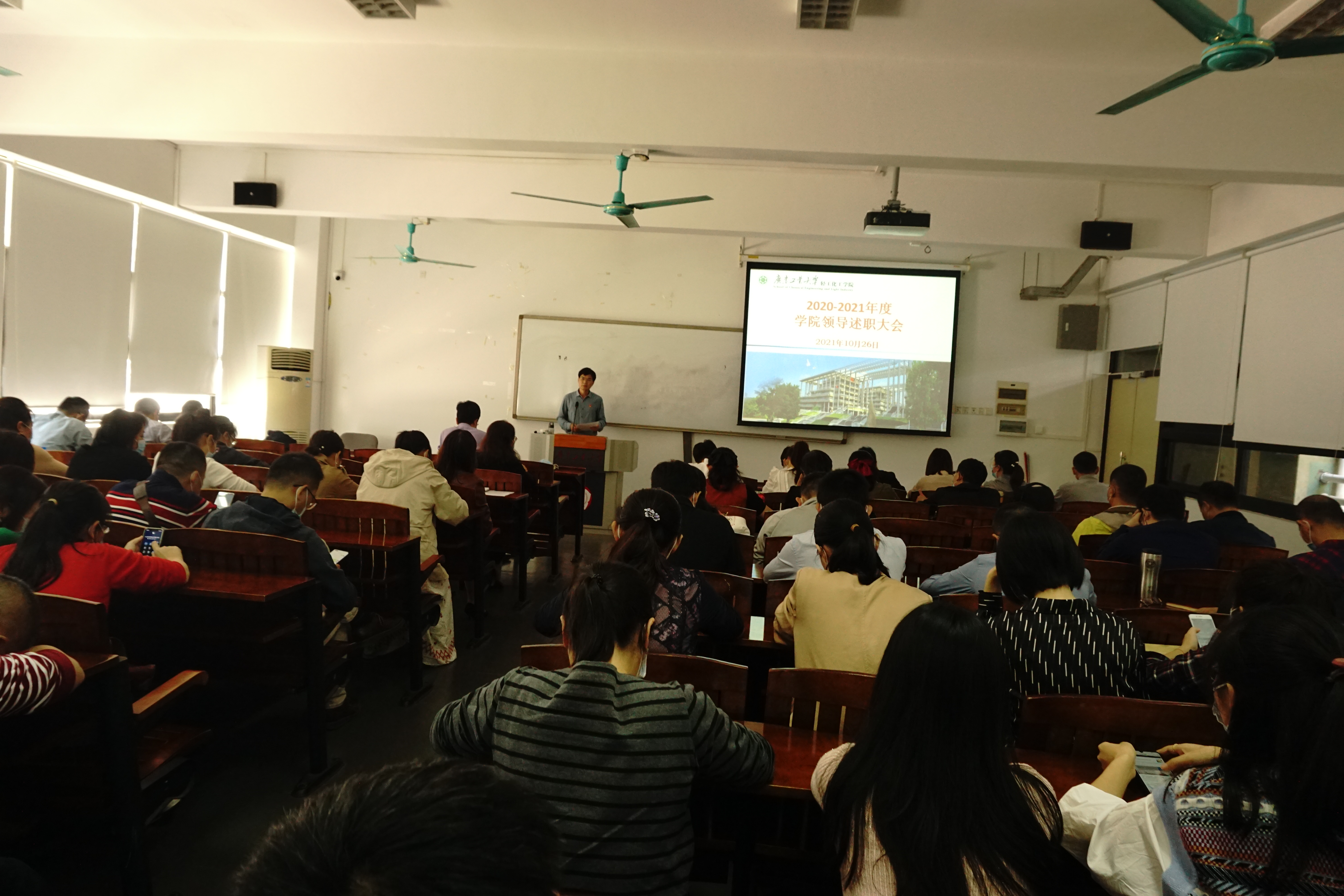 在实验四号楼召开2021年度学院领导班子述职大会,全体教职工参与了本次会议。