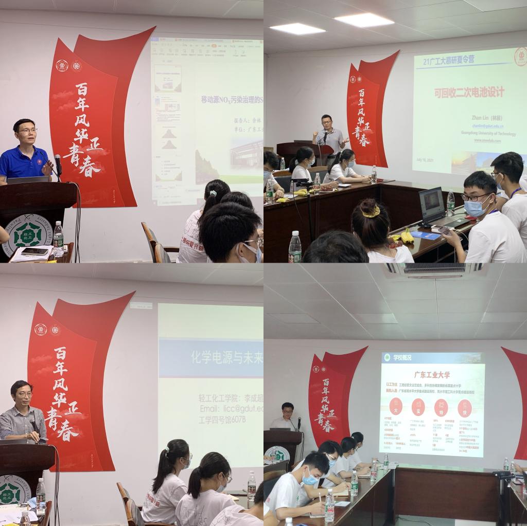 7月10日上午,在工学4号馆202会议室里,孙明教授、林展教授、李成超教授和何军教授四位博士生导师为同学们准备了一场丰富的学术讲座,他们分别介绍了移动源NOx污染治理的SCR催化剂研究、可回收二次电池设计、化学电源与未来生活以及功能框架材料的定向组装等方面的内容,生动地结合实例向营员们介绍了最前沿科研动态,营员们被深深吸引,不少同学表示这对他们而言是一个全新的科研体验,并表示因此大大增进了对科研的强烈兴趣。