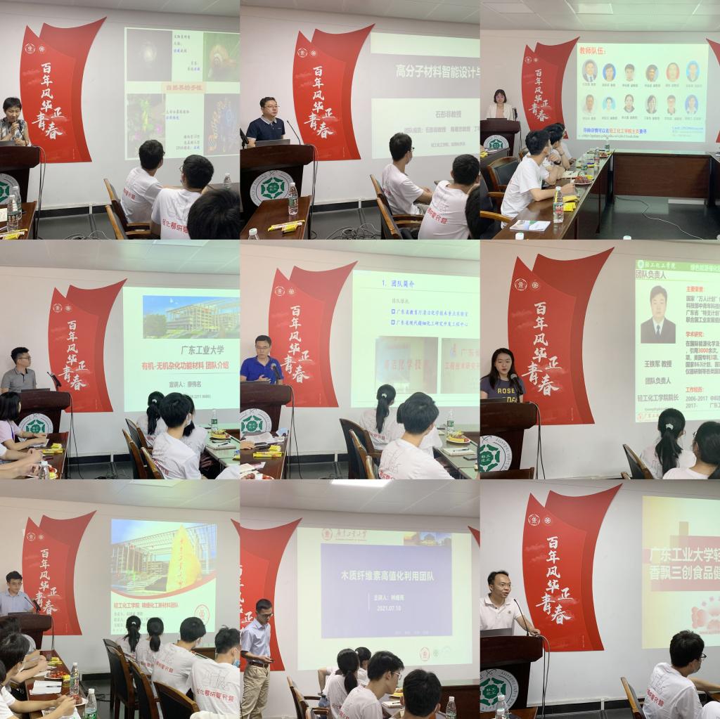 7月10日下午及7月11日上午,学院17个不同团队的导师分两个场次为营员们分享介绍了各个科研团队的基本情况。他们分别介绍了木质纤维素高值化利用、清洁化学技术、绿色化学过程、绿色能源催化、精细化工新材料、有机-无机杂化功能材料、有机光电材料与功能高分子、无机光电功能材料、电化学纳米能源、精细有机合成与特种功能材料、高分子材料智能设计与制造、先进储能材料与器件、新药开发及绿色催化、应用物理化学、食品方向及加工技术、食品营养与健康、电活性生物材料等研究方向,近年取得的科研成果、今后的发展目标以及对研究生的培养方案。会后营员们认为这个环节是增进营员与团队的最佳窗口,能让自身更加明确了未来选择科研道路的方向。