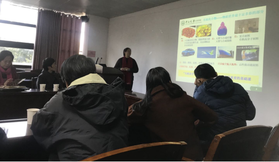 报告中,汪老师详细的介绍了国家一流课程《有机化学》的课程建设思路及申报经历,从教学体系的构建、教学理念的树立、教学方法、教学团队的建设、教材建设,以及对未来建设规划等方面对课程建设举措进行了分享;并从自己的教学经验讲述教学设计---科研进课堂---上好一门课,还贴心地与在场老师分享了不少日常教学中的实用技巧。报告结束后,汪老师与在场教师进行了精彩互动,并赠自己编写的《有机化学》教材,老师们纷纷表示受益匪浅。