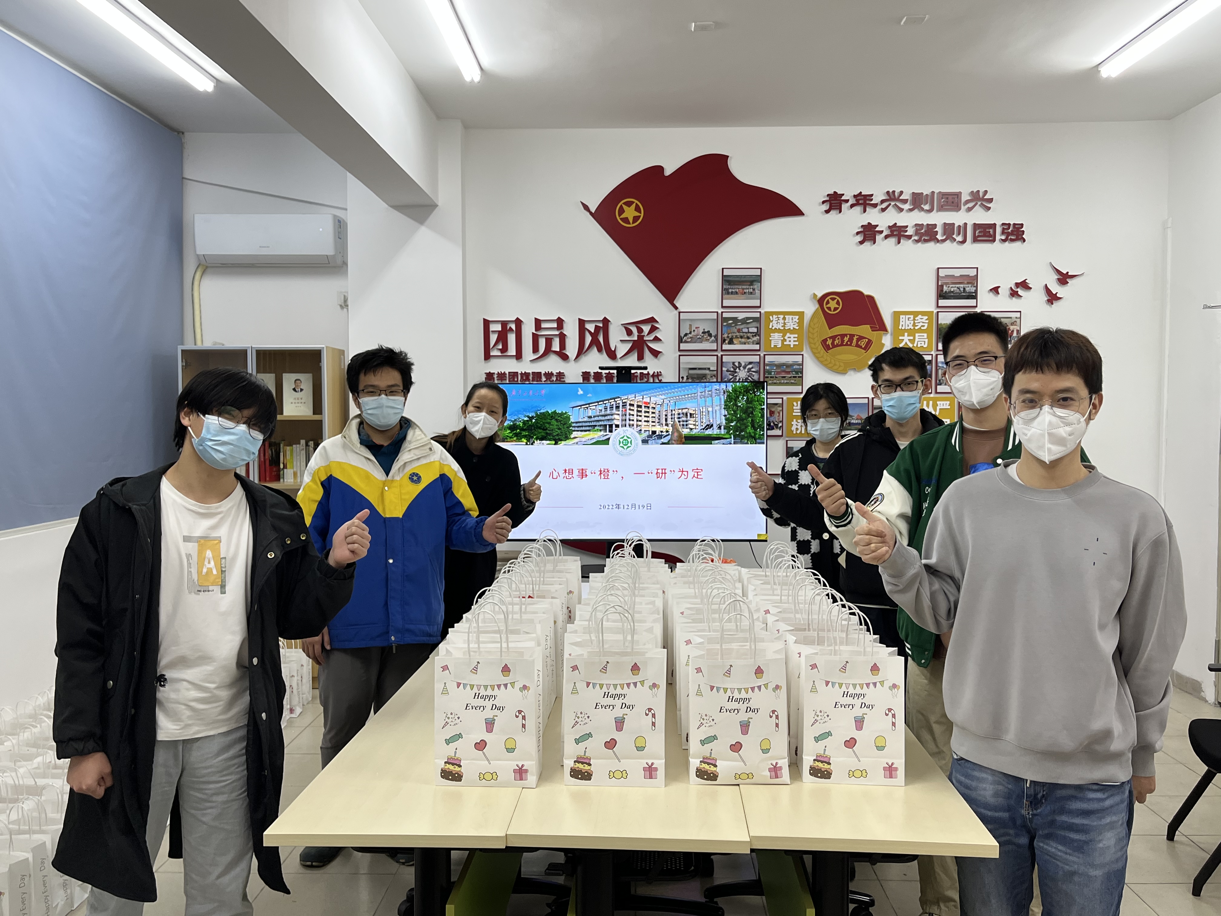 为减少人员聚集,各班派代表错峰前往东八社区育人空间领取考研“加油包”。毕业班辅导员付志滨一边发放礼包,一边叮嘱同学们在考研冲刺的最后阶段要做好防护、保重身体,同时鼓励同学们全力以赴、稳定心态,争取一战成“硕”。“加油包”里共有四样东西:橙子、牛奶、棒棒糖和暖宝宝。橙子寓意心想事“橙”,借助“橙”字的谐音预祝考研学子一战“橙”功 ;牛奶寓意“牛”气冲天、“牛”运亨通;棒棒糖寓意数你最“棒”、金“棒”题名;暖宝宝则表达了学院师生对考研学子的暖心关怀。考研“加油包”里的每一件物品都具有特殊的含义,承载了学院师生对考研学子的美好祝愿。收到考研“加油包”的同学表示十分开心,感受到了学院的暖心关怀,将会带着大家的关心与祝福认真备考。