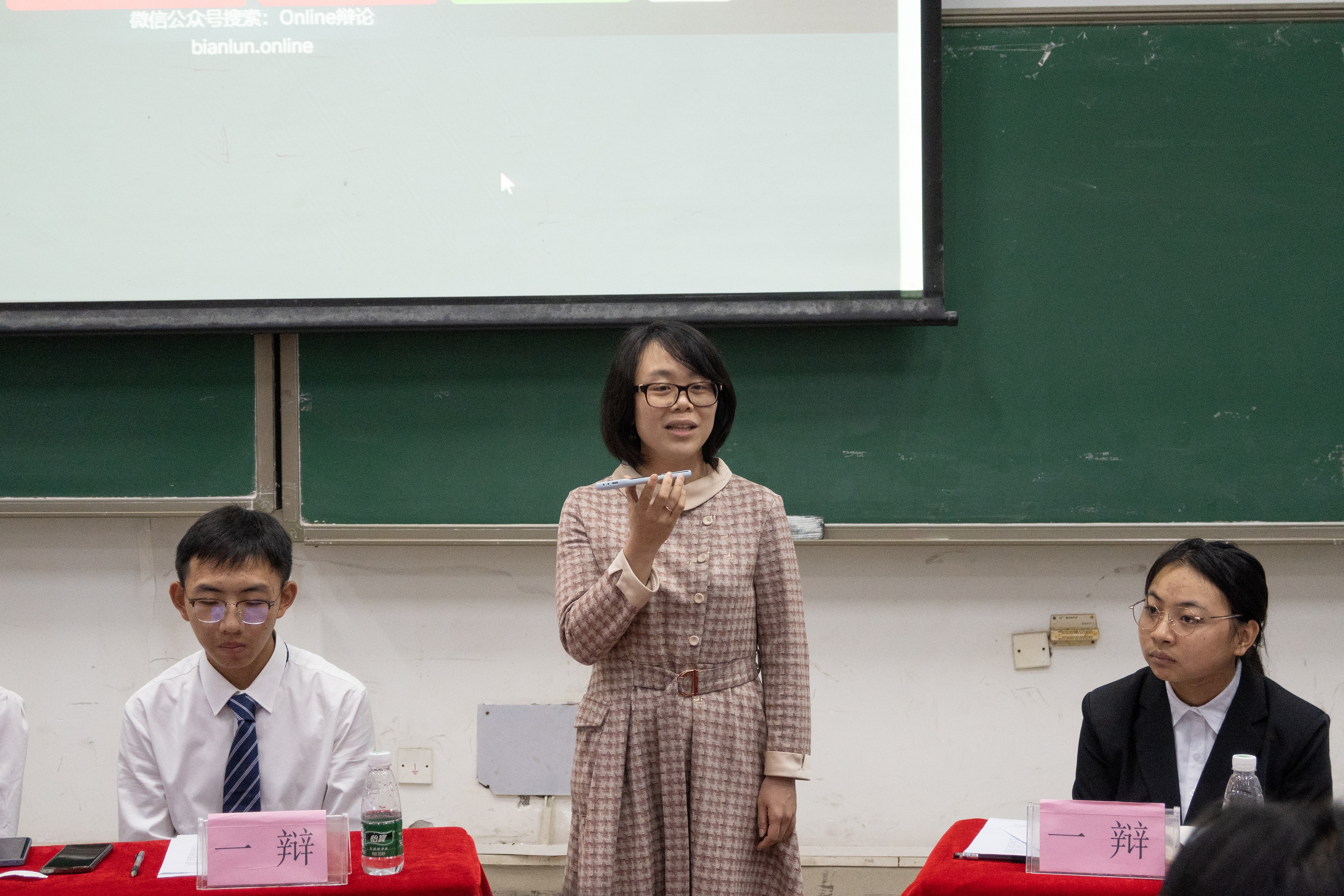 比赛开始前,学生会秘书长徐丹宁老师就此届“新生杯”辩论赛表达对辩手们的信心与对本次比赛的期待。在半决赛中,正反双方围绕“网络匿名特性是否有利于公众议题的讨论”展开激烈辩论。在决赛中,正反双方围绕“故事的结局是否重要”进行最终较量。首先辩手开篇立论,以充满理性色彩的自我论述拉开比赛的序幕,在驳论和自由辩论环节中,双方各持己见,辩手们精辟的措辞,犀利的语言,尽显气势。在最后的总结陈词环节中,正反双方再次阐述己方观点并指出对方论点中的漏洞,妙语连珠,旁征博引,一度将比赛推向了高潮。比赛结束后,李韵捷老师、王文师姐、索晓阳师兄就比赛作出点评,指出双方在辩论过程中的优点和不足,并传授辩论技巧。