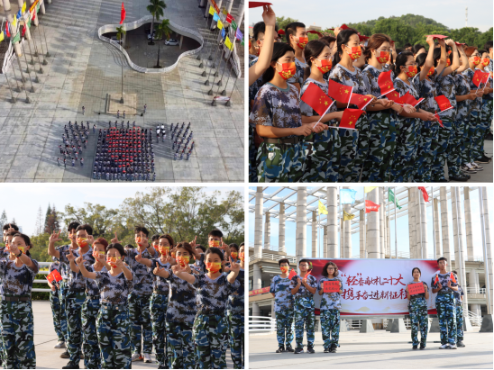 紧接着,全场同学合唱歌曲《国家》,并伴随歌声表演手势舞。歌声豪迈,饱含着浓浓的爱国情绪;指尖跳动,蕴含着蓬勃的青春力量。在鲜艳的五星红旗下,同学们摆出爱心阵型,表达对党的忠诚、对国家的热爱之情。