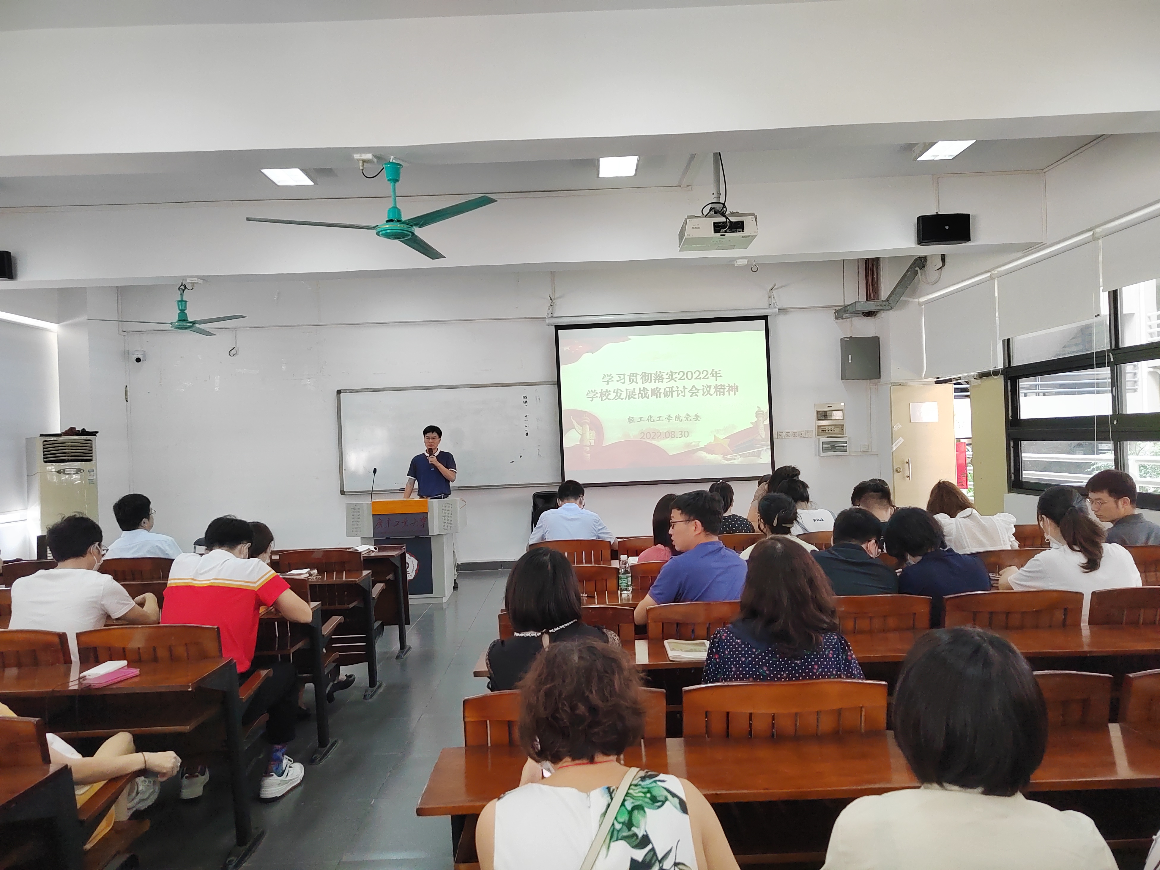 学院院长王铁军结合“1+2+3”攀撑计划建设任务为老师们介绍了学院未来发展的思考和规划,他提出学院将着重从特色人才培养、教学科研成果、一流师资队伍、重大科教平台等四个方面推进学科建设高质量发展。他强调,“广工有‘天时’有‘地利’,这是我们奋进新征程的优势所在、信心所在、底气所在!”学院全体教职工要抢抓粤港澳大湾区建设重大历史机遇,扎实推进“1+2+3”攀撑计划,奋力开创学校高水平创新型大学建设新篇章。