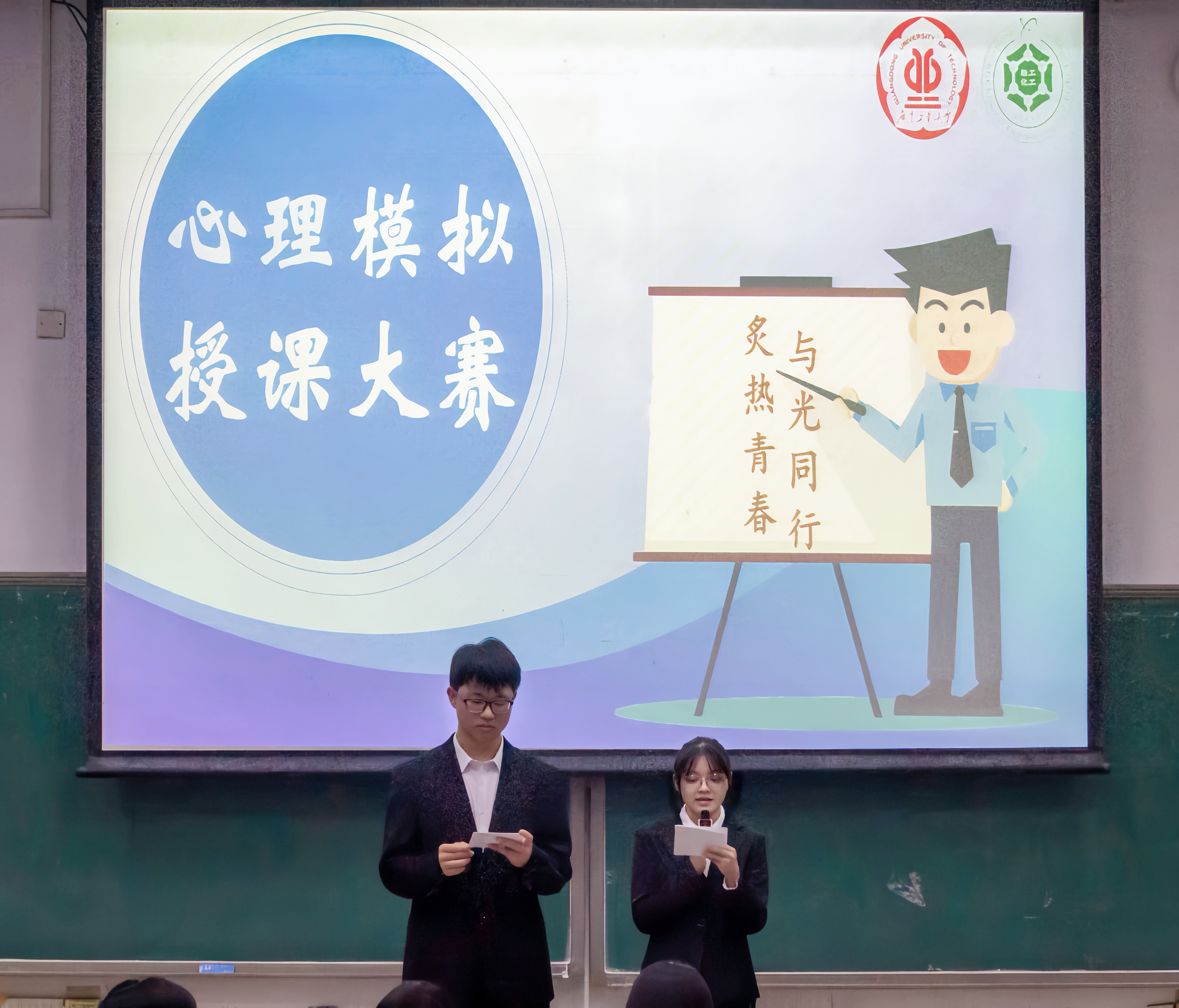 于2024年3月22日晚在教四204课室举办了2023-2024学年春季“炽热青春,与光同行”模拟授课大赛,学院心协指导老师冯浩宸老师,学院心协主席团成员陈浩楠、冯诗咏和宣传部部长张佳明同学出席并担任本次活动的评委嘉宾。