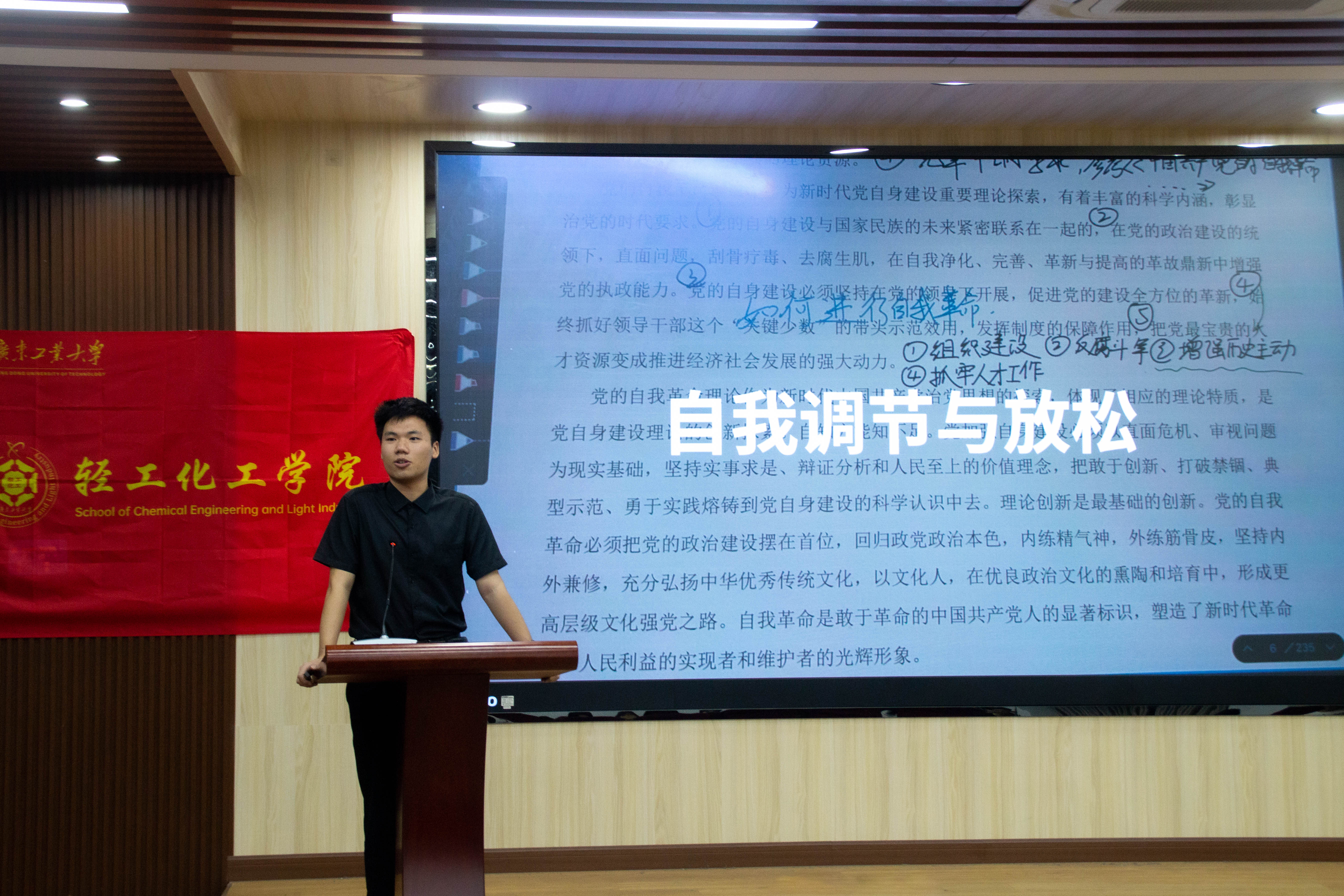 周涌兴同学结合自身经历,分享他在大学中的探索与成长,讲述了他在学习和生活的坚持与努力,坚持每天的阅读与运动,激励同学们为自己的人生而拼搏,但也要注意劳逸结合,适当的运动和放松,向同学们强调行事做人需像他的名字一般“涌兴”——用心:用心思考,用心付出。