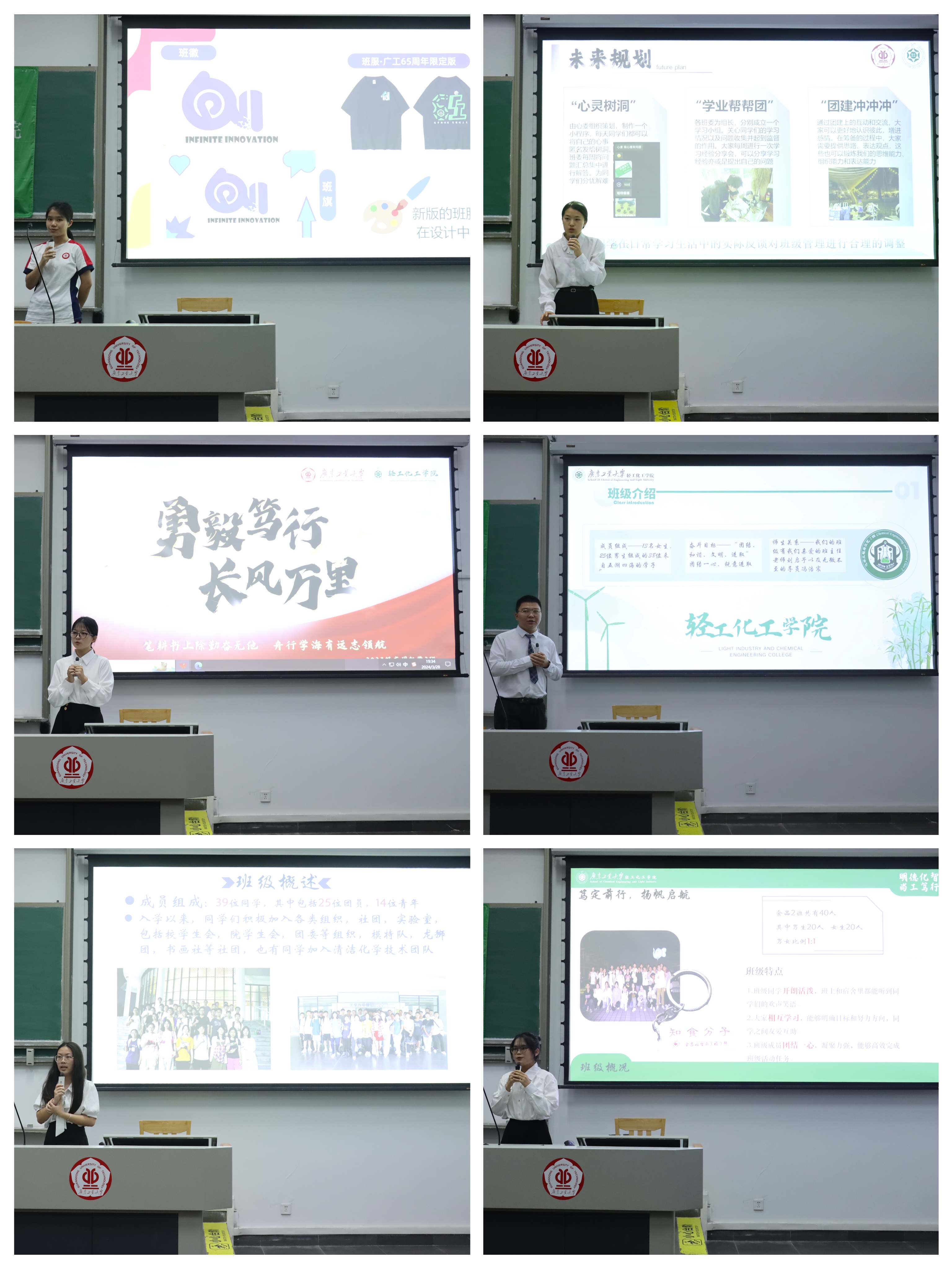 活动现场,6支2023级新生班级队伍依次图文并茂地展示本班的班级特色、班级制度、思想作风、学习氛围及文体活动,回顾这一学年的班级建设的重要成果及不足之处,规划班级未来发展蓝图。