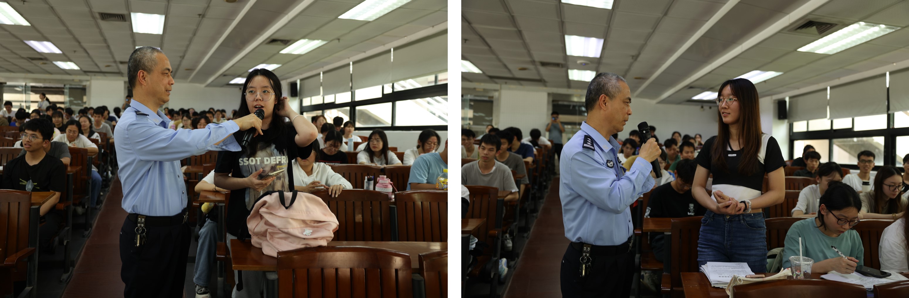 陈警官结合大学生思想行为特点,从网络交友、冒充客服、虚拟购物等常见诈骗手段切入,引用师生身边真实案例,深入剖析受骗学生心态,并针对性给出“九大防范小妙招”。面对即将到来的毕业季与求职季,他特别向大四、研究生等高年级同学着重介绍了求职与毕业过程中,如代写论文诈骗、买卖offer等全新骗局,提醒同学们提高辨别能力,端正思想。