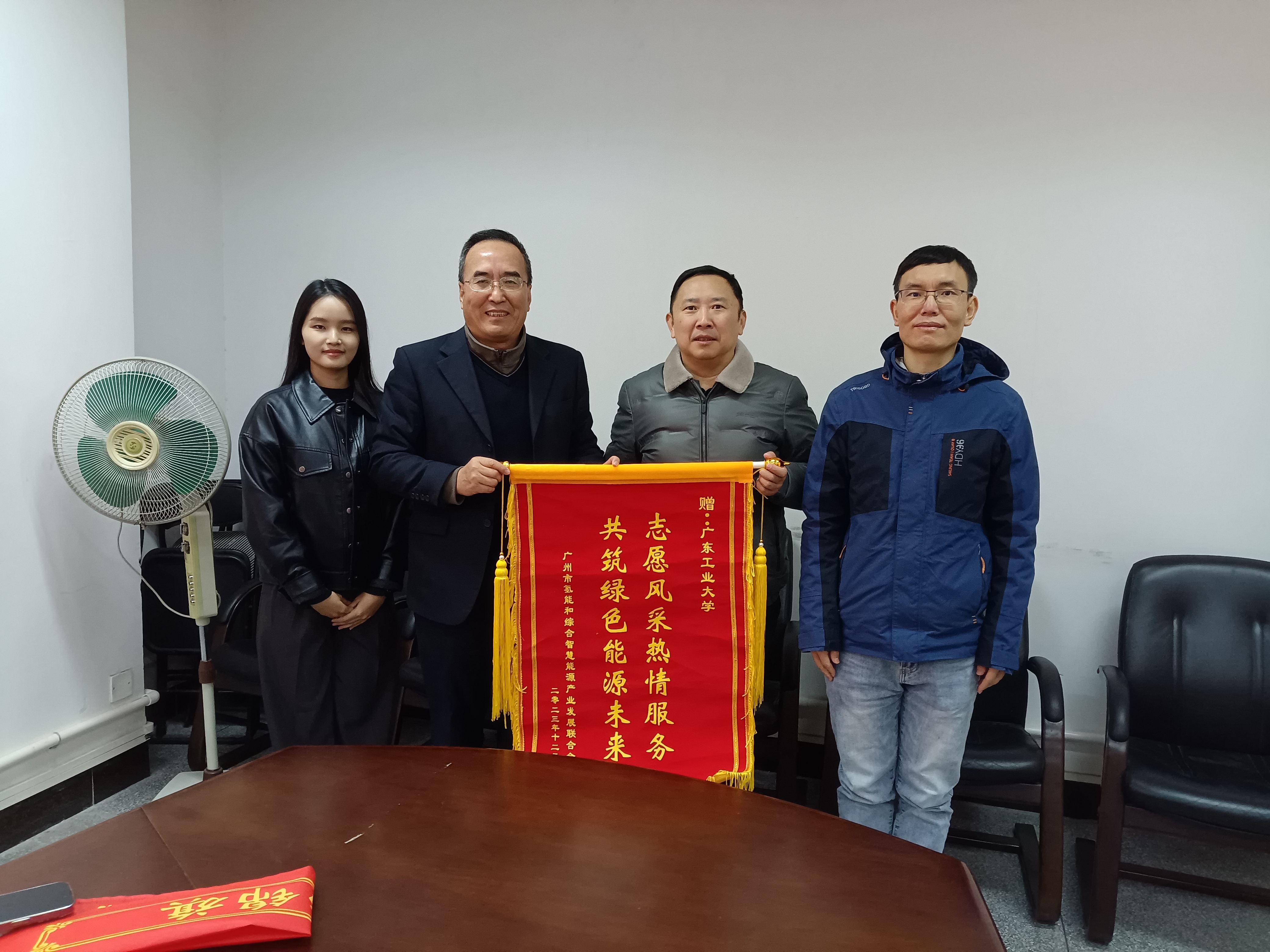 会议期间,贝勒漫画 组织了16位本科生(氢能微专业)及相关方向研究生参与到本次大会的志愿服务中,为大会的顺利开展贡献一份青春力量。志愿者们身穿蓝色马甲,始终坚守岗位,在签到组、物资组、接待组和机动组尽职尽责,用心用情服务志愿者们熬夜加班至凌晨两点协助主办方如期完成了会议材料准备工作,工作表现获得了主办方的高度肯定和与会嘉宾的交口称赞1223日上午,广州市氢能和综合智慧能源产业发展联合会执行会长宋中林、项目部经理李育潞一行代表大会主办方为志愿者们送上书写着志愿风采热情服务,共筑绿色能源未来的锦旗以表感谢。学院余林教授、孙明教授代表志愿者们接受了锦旗。