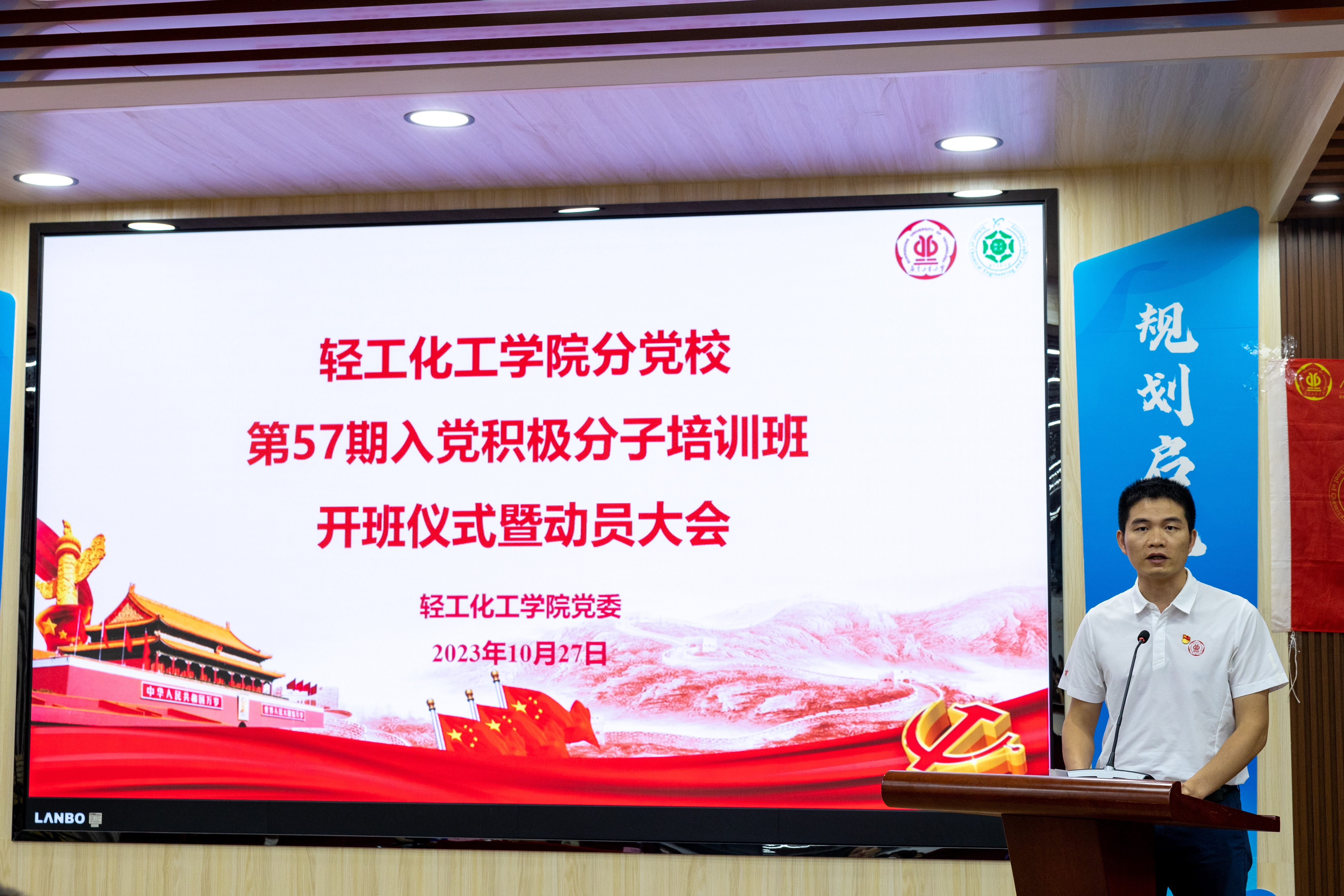 党委副书记杨刚老师,学院党建指导老师郭佳欣老师、冯浩宸老师以及全体第57期入党积极分子参加本次开班仪式。