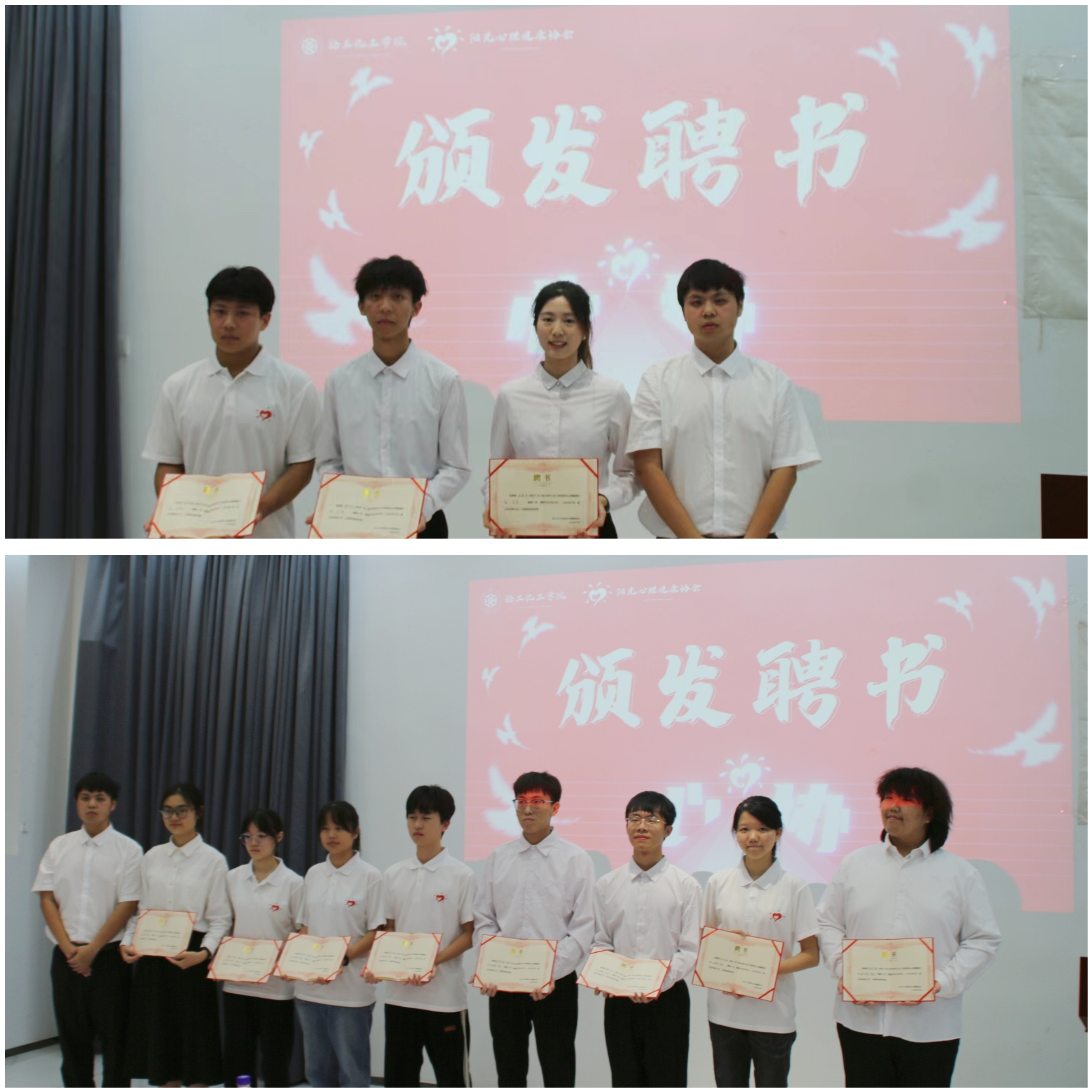 最后,两位主持人宣读新一届心协主席团成员以及各部门部长名单,进行聘书颁发仪式。