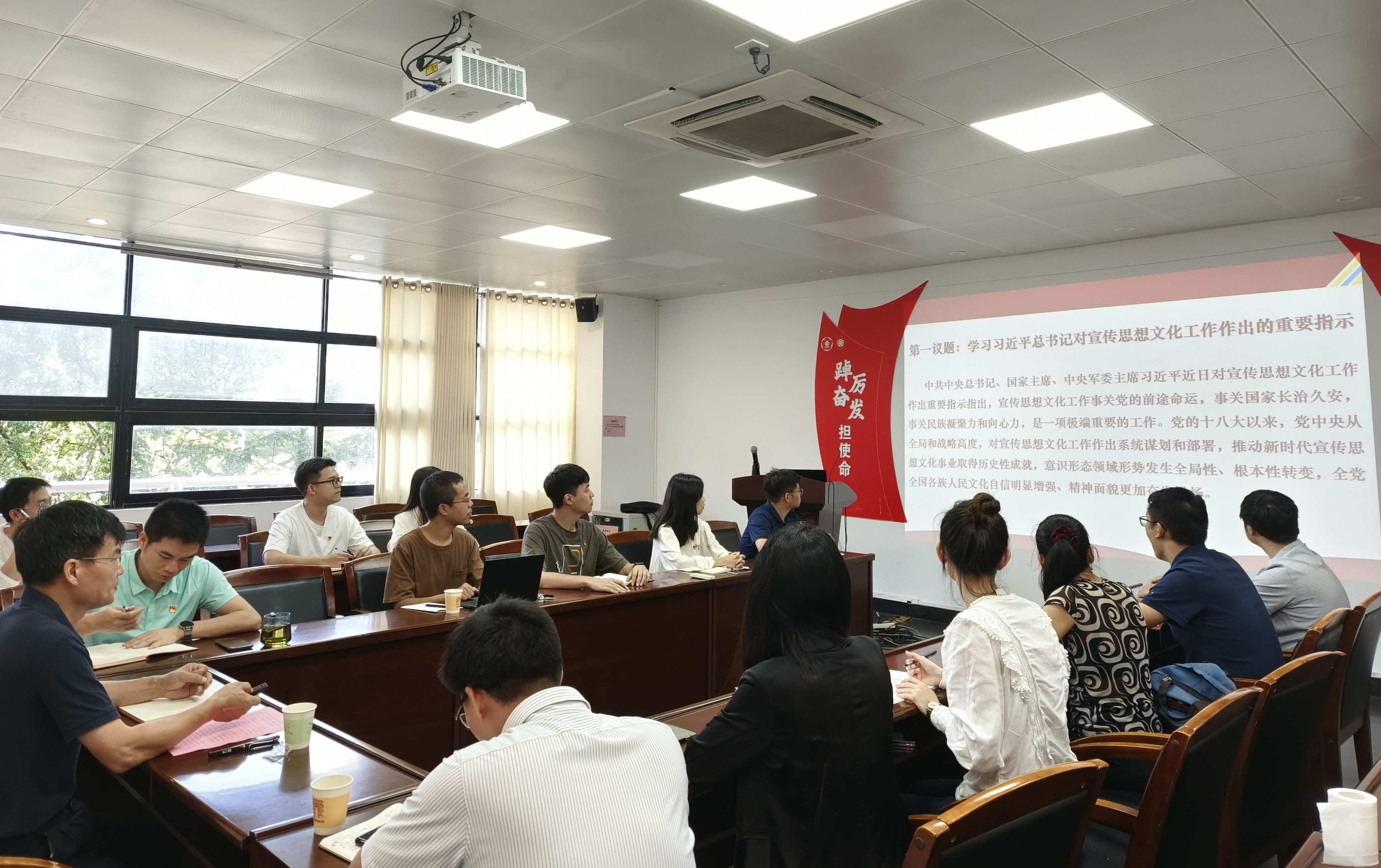 随后,与会成员进行了热烈讨论。周东斌结合自己的心得体会向全院师生提出三点要求:一是要切实增强做好新时代新征程宣传思想文化工作的责任感使命感,主动学习、深刻领会习近平总书记对宣传思想文化工作作出的重要指示以及全国宣传思想文化工作会议精神;二是要紧紧围绕“七个着力”的要求,结合日常工作进一步夯实意识形态工作责任制,将把好政治关和舆论导向作为学院宣传工作的出发点和立足点,牢牢掌握意识形态工作领导权;三是要强化贯彻落实,推动学院的各项工作落地见效。要以钉钉子精神把各项任务要求落到实处,将宣传文化思想工作与落实立德树人根本任务结合起来,与教学科研和人才培养结合起来,为学校“1+2+3”攀撑计划学科提升工程、高水平创新型大学建设贡献智慧与力量。
