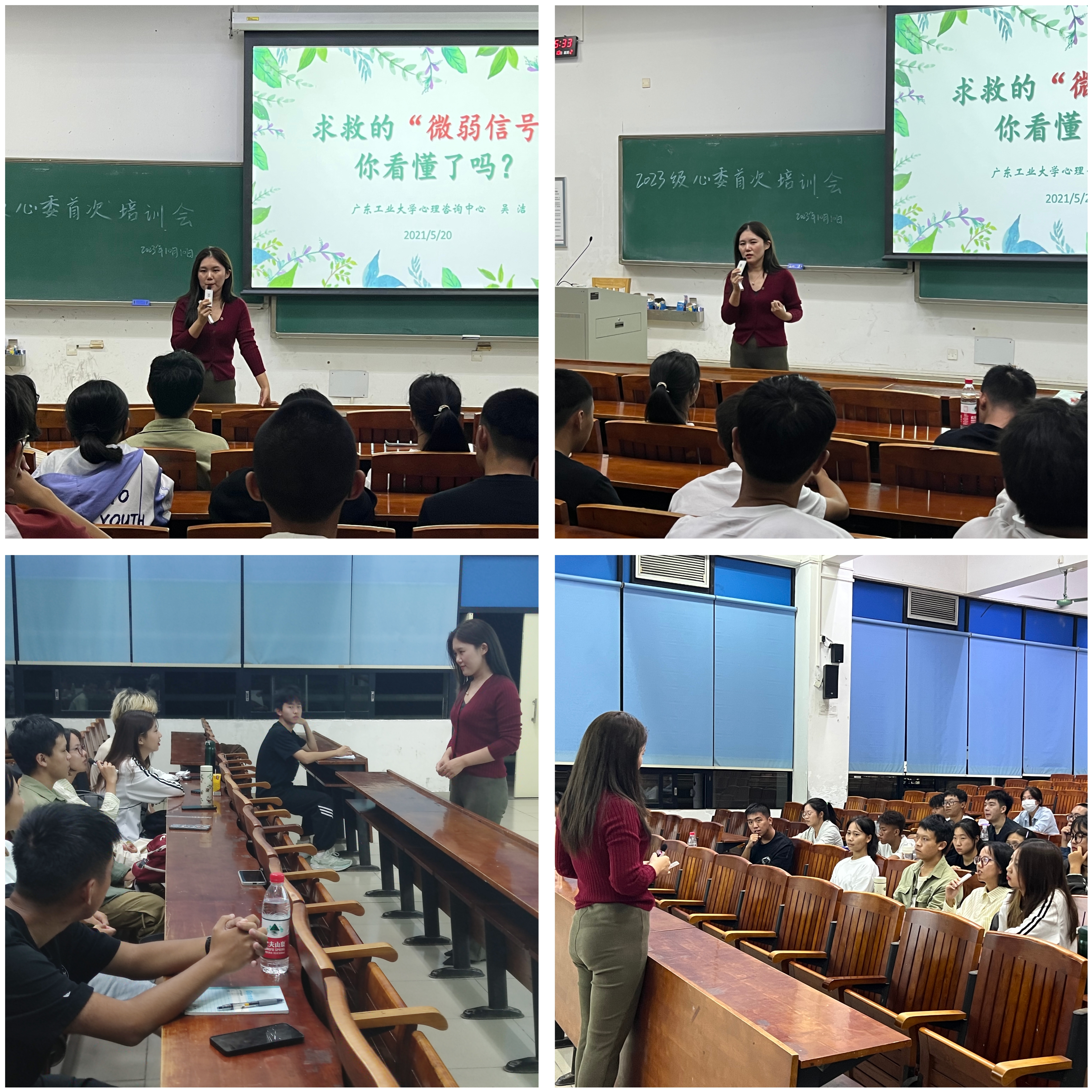 会上,校心协指导老师吴洁老师表达了对全体心理委员的关心,她认为,少有人是天生的疗愈者,大部分人是受伤的治疗师,心理学讲究助人自助,心理委员在帮助同学们的同时,也要学会调节自己的情绪,做到自我关怀。在吴洁老师与心理委员的互动中,她向心理委员们介绍了如何去识别“求救”的微弱信号,成为“心理危机”的发现者,时刻关注同学们的心理变化并及时疏导他们的心情。她也希望心理委员们能够与其他班委相互合作,多举办心理班会,帮助新生同学更好地适应大学生活,保护同学们的心理健康。