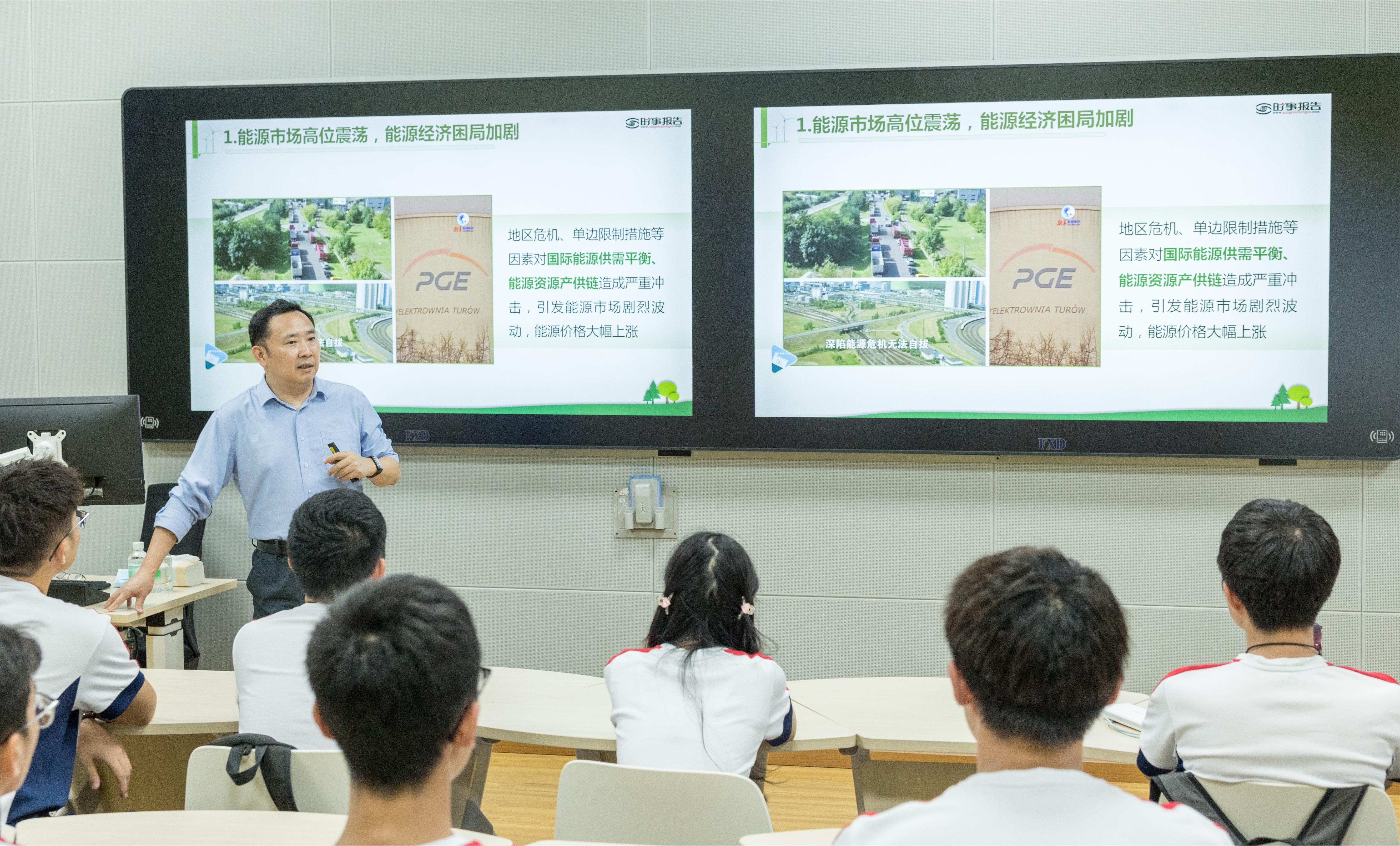 2023年5月16日下午,学校副校长余林教授在大学城校区教学楼六号楼智慧课室201贝勒漫画 2022学生讲授以“国家双碳政策的现状及新能源电池的发展”为主题的《形势与政策》课。