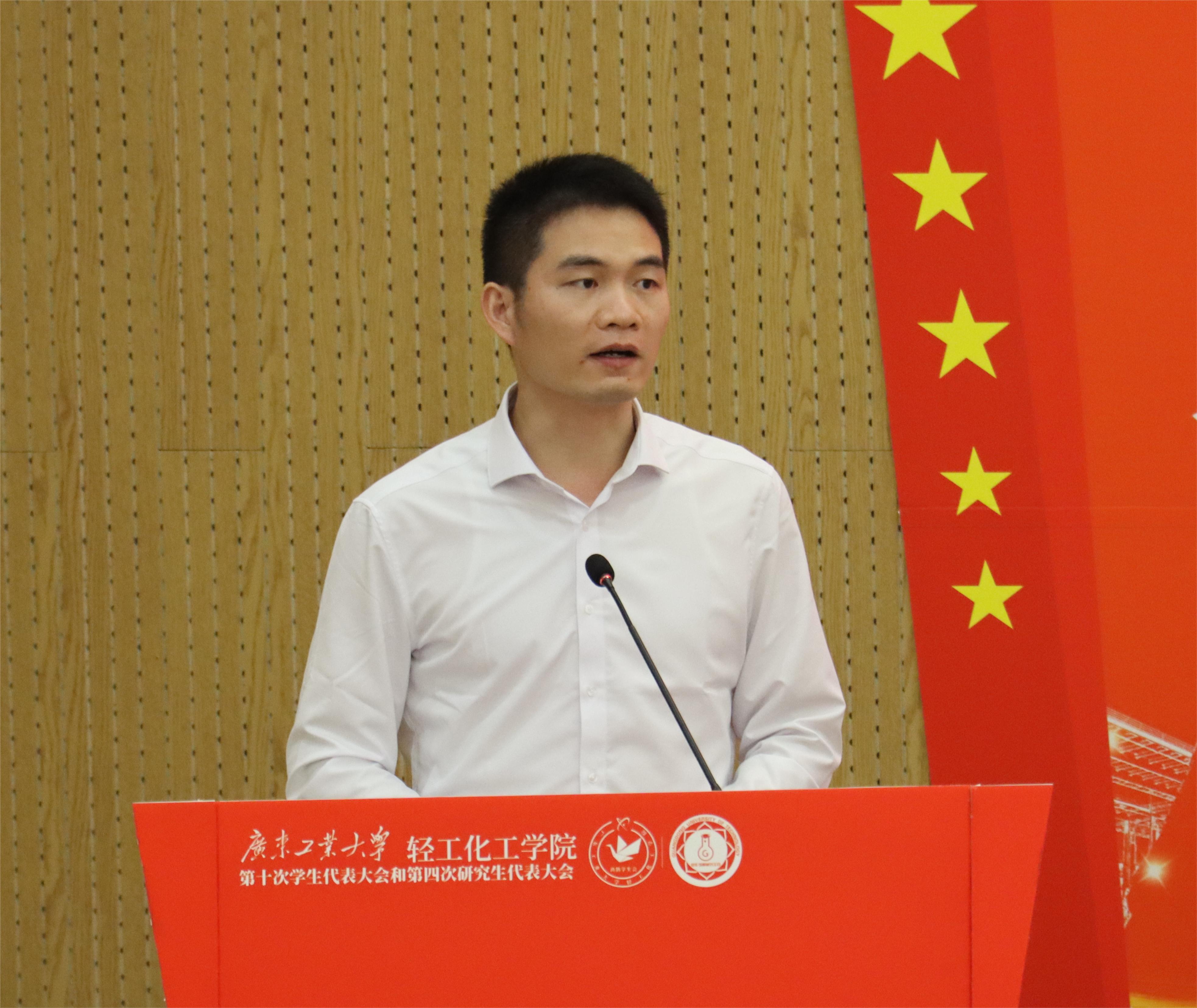 大会在庄严的国歌声中拉开帷幕。学院党委副书记杨刚进行了讲话,他充分肯定了学生会和研究生会过去一年里为服务青年学生成长成才做出的积极贡献,并对全体代表提出四点希望:一是坚定理想信念,勇担时代使命;二是当好桥梁纽带,提升服务实效;三是注重全面发展,善于创新创造;四是抓实队伍建设,坚持从严治会。他勉励青年学生要认真学习贯彻党的二十大精神和习近平总书记视察广东重要讲话重要指示精神,在奋发图强中砥砺前行,在志存高远中勇担使命,沿着党和人民开辟的正确道路,保持定力,开拓创新,以乘风破浪的姿态在学校高水平创新型大学建设中贡献轻化力量。