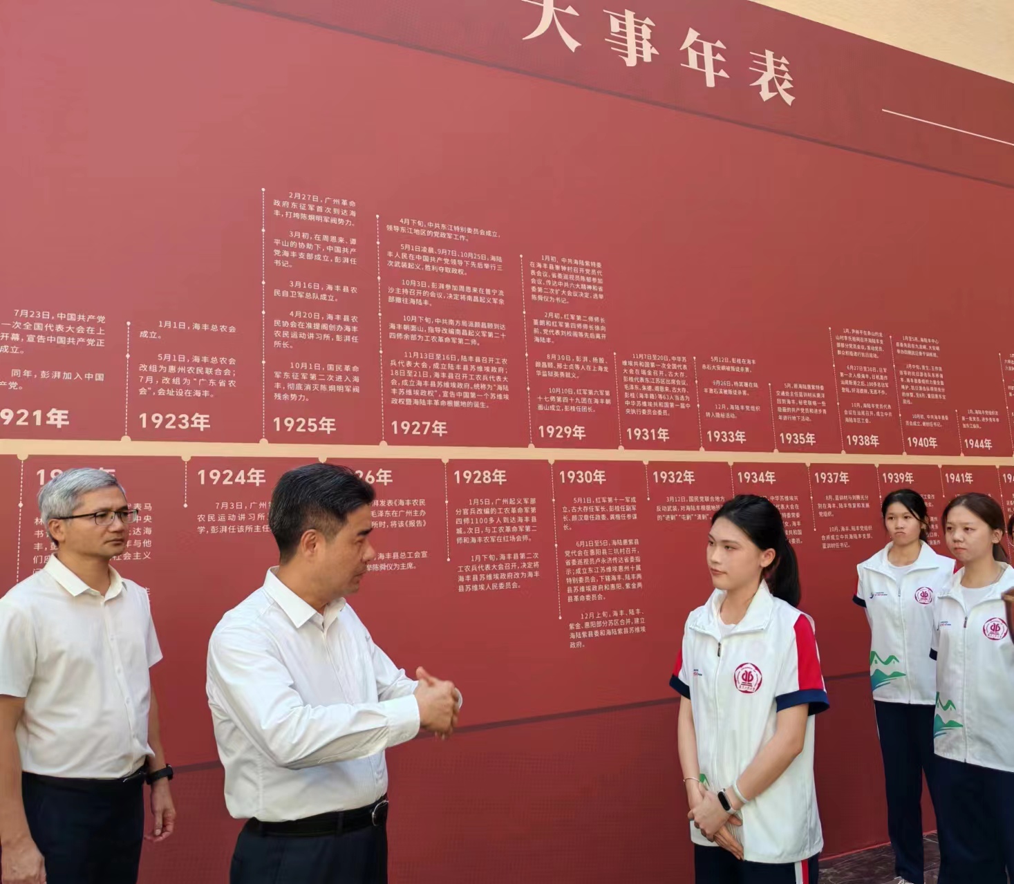 正在海丰县开展暑期“三下乡”社会实践活动的师生。学校党委副书记朱蔚蔚、陈卓武,党委常委、宣传部部长张育广等陪同看望。