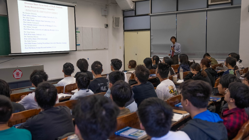 为了保证授课质量,Maruoka教授精心准备了中英文双语版本的PPT课件,内容详实且图文并茂。在整个英语授课过程中,教授细心地放慢语速以适应不同水平的学生需求,同时还高度注重课堂上的师生互动环节,还专门设置了问答环节,鼓励大家积极参与讨论。两堂课下来,学生们全神贯注,沉浸在知识的海洋中,对大师的教学表现出极大的珍视。并纷纷表示受益匪浅,不仅对专业知识有了更深刻的理解,也从教授身上学到了宝贵的科研经验和人生哲理。