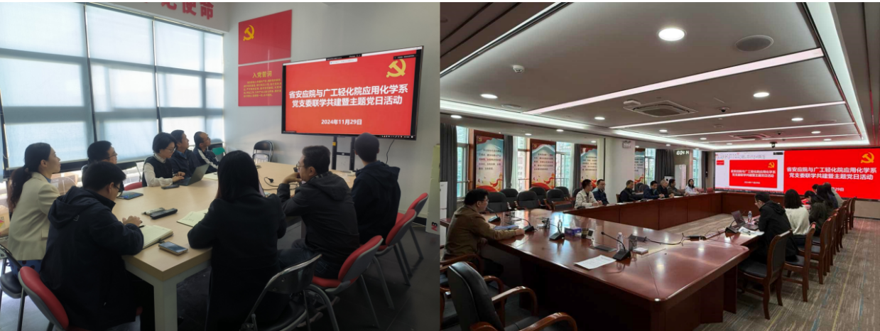 应用化学系党支部与广东省安全生产和应急管理科学技术研究院(以下简称省安全应急研究院)党支部于11月29日上午在工学四号馆602会议室联合举办了一场卓有成效的共建暨主题党日活动。通过深入交流、资源共享和优势互补,共同提升双方在实验室安全和应急管理领域的专业能力和服务水平。