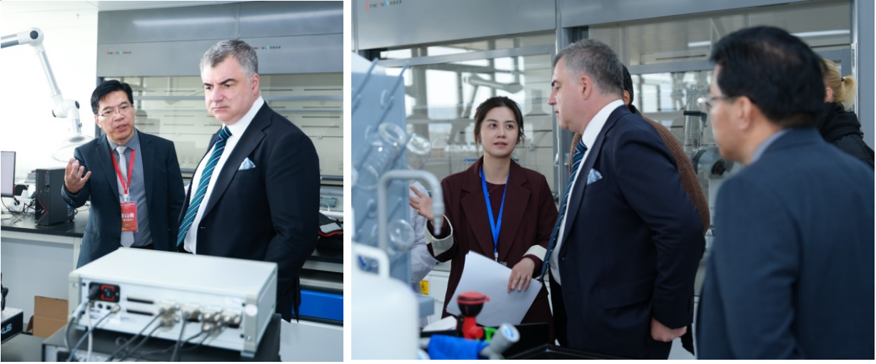 随后,团队学生们进行了演示实验,展示了在智能二维材料与绿色电化学领域的阶段性研究成果。康斯坦丁院士对科研团队展现出的创新思维和扎实的实验技能给予了充分肯定,并与学生们进行了深入交流。康斯坦丁院士针对实验中存在的关键问题提出了专业且具有启发性的指导意见,鼓励学生们大胆突破传统思维局限,积极开展跨学科研究,加速推动科研成果向实际应用转化。
