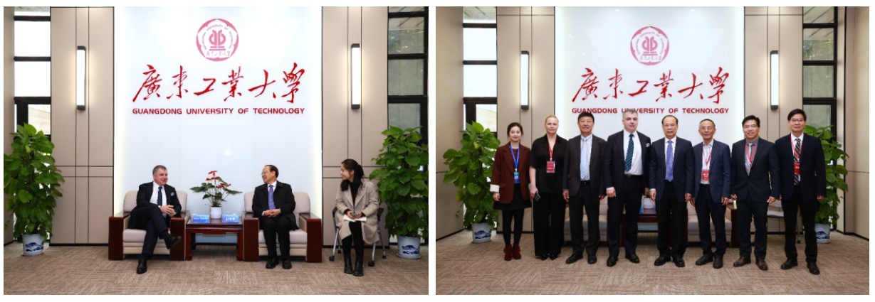 校长邱学青与康斯坦丁院士举行了亲切且富有成效的会谈,围绕智能材料与绿色电化学领域的前沿科研方向、创新人才培养以及国际合作模式等关键议题,进行了深入的交流探讨。中国科学院院士陈小明及澳大利亚科学院院士赵惠军共同见证了这一重要时刻。邱学青校长对康斯坦丁院士的莅临表示热诚欢迎,并对联合实验室的未来发展充满信心。他强调,此次合作将整合双方优势资源,汇聚全球顶尖科研智慧,推动学校在相关领域实现科研水平质的飞跃,同时为培养具有国际视野和创新能力的高素质人才提供广阔平台。康斯坦丁院士对广工在科研创新方面的积极作为和显著成绩给予高度评价,非常满意联合实验室的建设速度,同时对发展前景充满期待。他表示,希望借助联合实验室这一平台,双方能够紧密合作,深入探索智能材料与绿色电化学领域的未知领域,共同应对全球性挑战,为推动行业发展贡献力量。