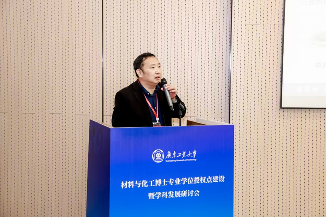 邱学青在会议开幕式上致辞,热烈欢迎各位专家莅临我校指导专业博士点建设。邱校长用“大、实、特、快”四个字概括了学校的发展情况,并表示2024年是我校发展史上具有里程碑意义的一年,学校在学科建设等多方面取得了质的飞跃,新增了7个博士点,位列全国第七、广东省属高校第一,实现了理工学科专业学位博士点的全覆盖,获批设计学一级学科博士点,实现了交叉学科博士点零的突破。他指出,材料与化工博士专业学位授权点的建设,不仅是我校博士学位授权体系的重要一环,更是响应国家战略、推动化工学科向绿色化、高端化发展的重要举措。他表示,希望通过此次研讨会,与专家们深入交流,共同谋划学科发展的战略布局,凝练学科方向,明确未来发展思路,并希望借此机会加强与各位专家的合作,为大湾区绿色创新发展贡献力量