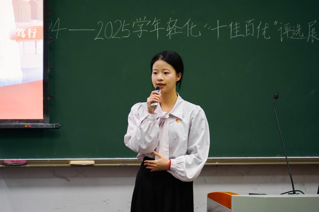 李韵捷在总结讲话中充分肯定了参赛选手在学业发展、学生工作、文体艺术、志愿服务等全方面发展的卓越个人能力,赞扬选手们知行合一的担当品格与破立并举的创新智慧,在追求个人发展的同时,不忘“投之以李,报之以桃”回馈学院与社会。她特别寄语低年级同学,当以十佳百优为榜样,学习选手们在答辩中展现出落落大方、衣着得体、从容自信的青春形象,于书本课堂中夯实根基,于演讲台前锤炼胆识,与学生工作中淬炼担当,让青春在躬身实践中绽放光华。