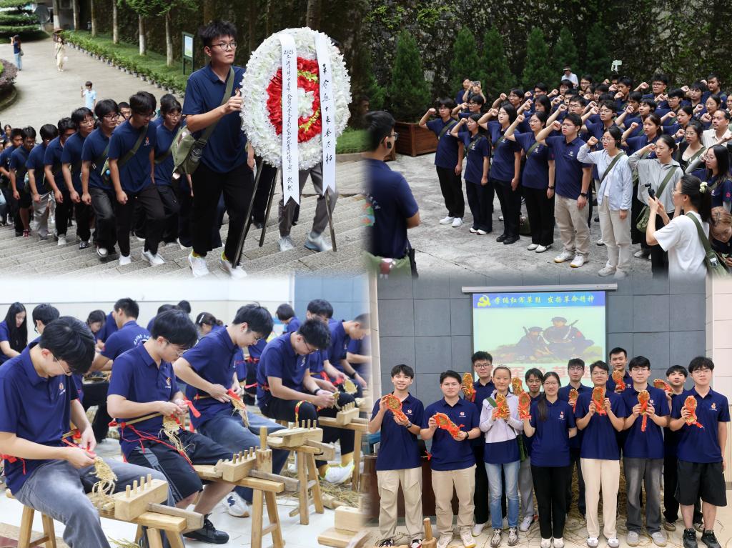 在井冈山革命烈士陵园,队员们为革命烈士献花,默哀追思先烈,聆听光辉事迹,并庄严重温入团誓词,以青春之名许下“党有号召、团有行动”的坚定承诺。草鞋编织课堂上,在非遗老师傅的指导下,大家搓草绳、编鞋身。指尖翻飞间,粗糙的草绳逐渐成鞋。这不仅是手工艺的体验,更是一次精神的洗礼:每一根草绳,都是与历史的一次对话;每一双草鞋,都是对长征精神的一次致敬。