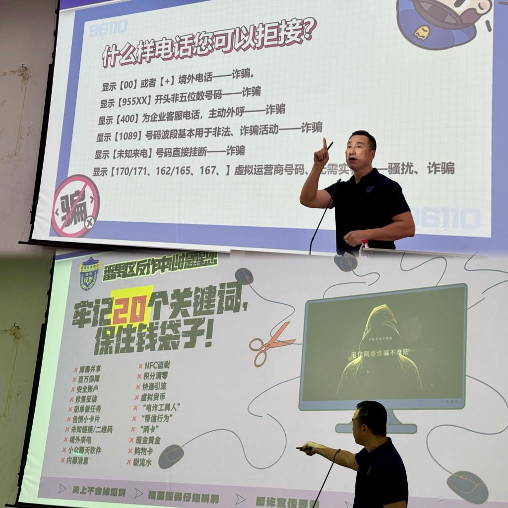 “同学们,要想守好‘钱袋子’,切勿‘孤注一掷’啊!”,王鑫警官特别强调,“误触非法链接”“冒充熟人”“高薪工作”“低门槛网贷”“刷单”“杀猪盘”等是大学生容易“中套”的手段,并指出切勿因轻视诈骗分子,而导致“中套”后仍二次被骗。此外,王鑫警官还向新生介绍了“20个关键词”以及诈骗的“八大金刚”等防范措施。