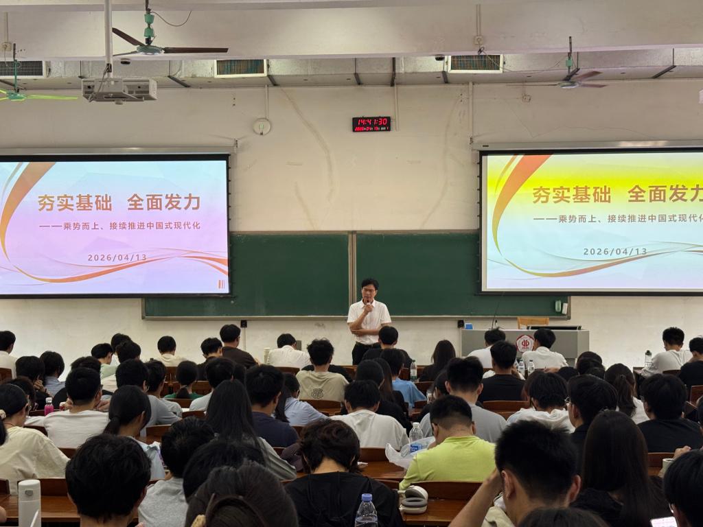 党委书记周东斌以《夯实基础 全面发力——乘势而上、接续推进中国式现代化》为题,为2025级应用化学、食品科学与工程专业全体本科生讲授“思政第一课”。