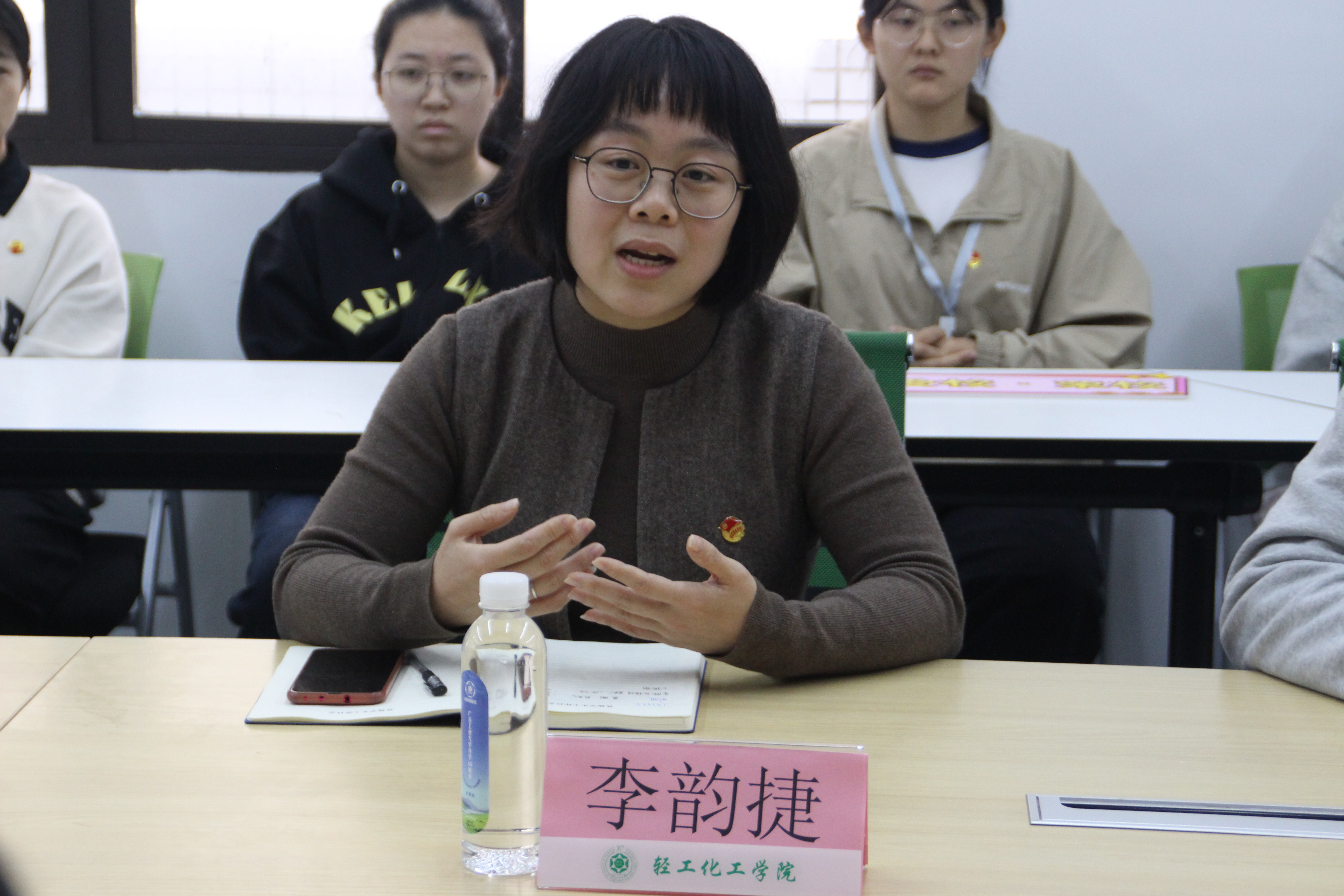 李韵捷老师首先对潘湛昌老师轻化学子进行分享表示感谢。随后,她以自身在亚运会期间的志愿服务经历为切入点分享了她在生活中是如何践行雷锋精神、如何引导后辈参加志愿活动的,用实际经历为同学们阐明了志愿服务对个人成长的作用。在分享会上,她将亚运会志愿者纪念奖章与大家分享,鼓励大家弘扬雷锋精神,共同投身志愿服务。