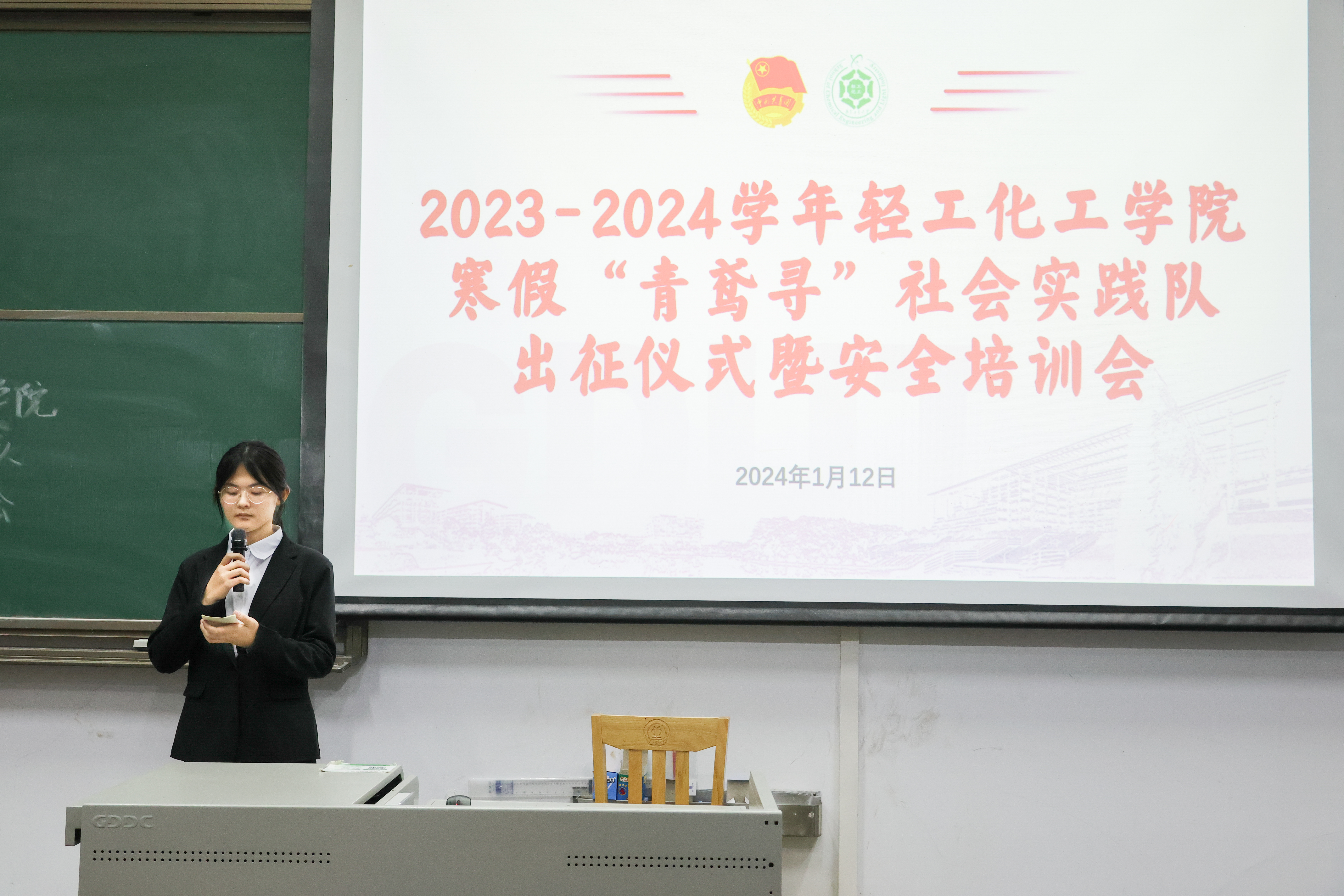 开展2023-2024学年“寒招”与寒假“青鸢寻”社会实践活动,并于1月12日在大学城校区教学3号楼102室举行社会实践出征仪式暨安全培训会,学院团委书记李韵捷,辅导员张昊昀及10名实践队伍代表出席本次会议。