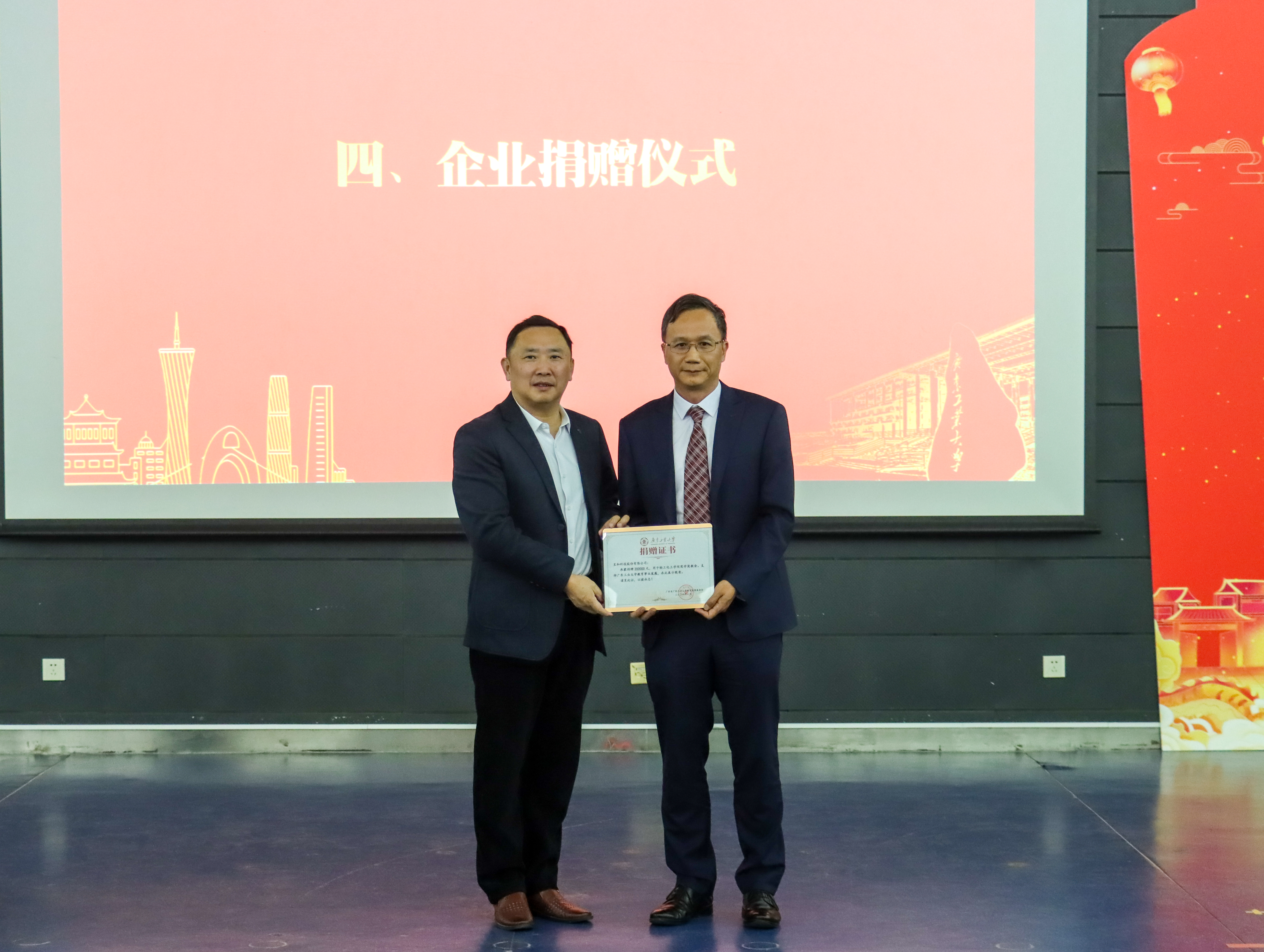 会议还举行了企业捐赠仪式。1988届校友赵文林先生创办的国家级专精特新“小巨人”企业——呈和科技股份有限公司于近日向学院捐资20万元设立奖教金,用于奖励为学院发展做出贡献的优秀教师集体和个人。2015届化工专业夏树敏校友为学院教职工新年联欢会捐赠200份日化品。余林为捐赠企业代表颁发捐赠证书。