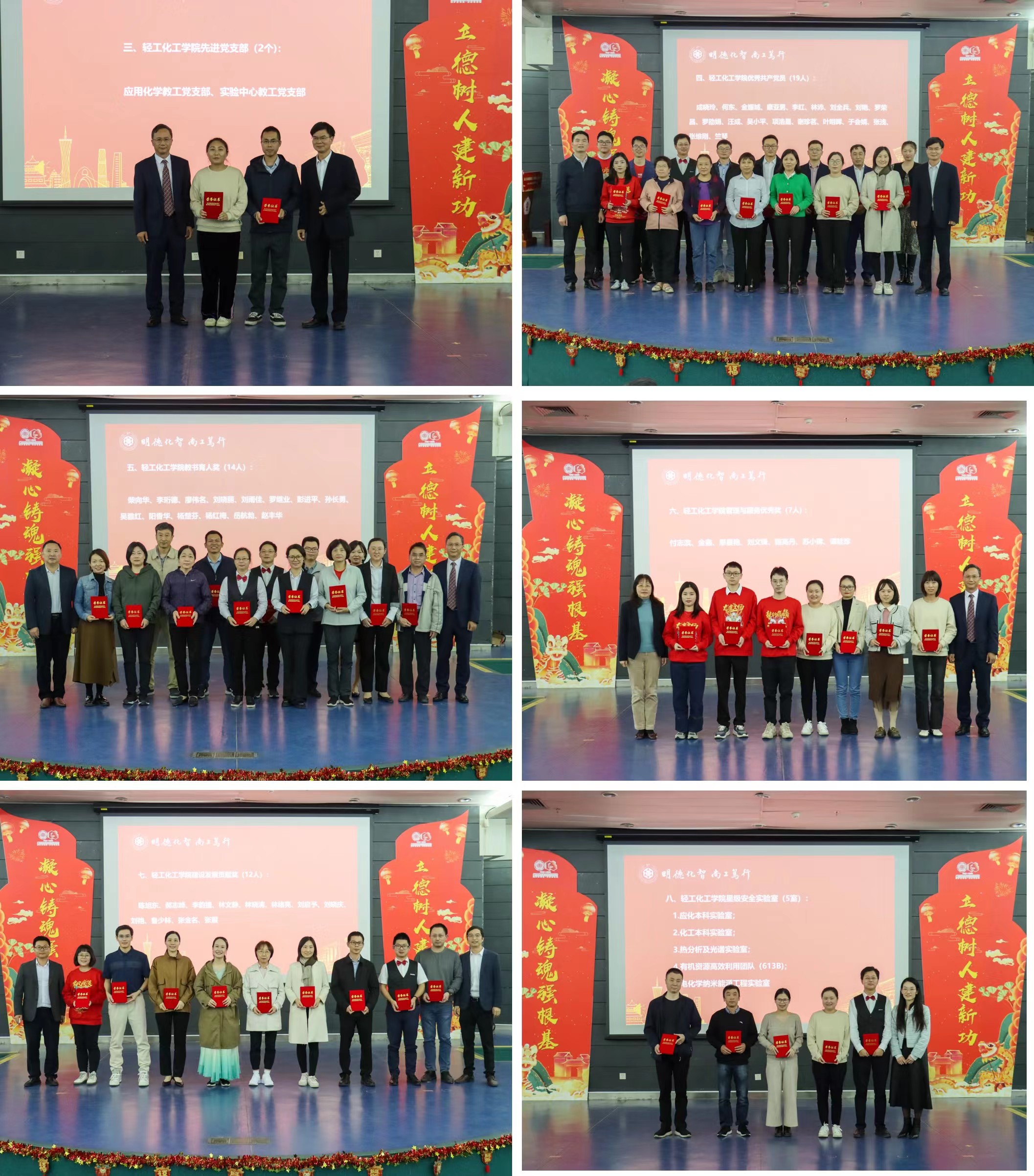 会议对2023年度学院教职工先进集体和个人进行了表彰,共表彰先进党支部2个、优秀共产党员19人、教书育人奖14人、管理与服务优秀奖7人、学院建设发展贡献奖12人、星级安全实验室5个。捐赠企业代表和学院领导为获奖集体和个人颁发荣誉证书。