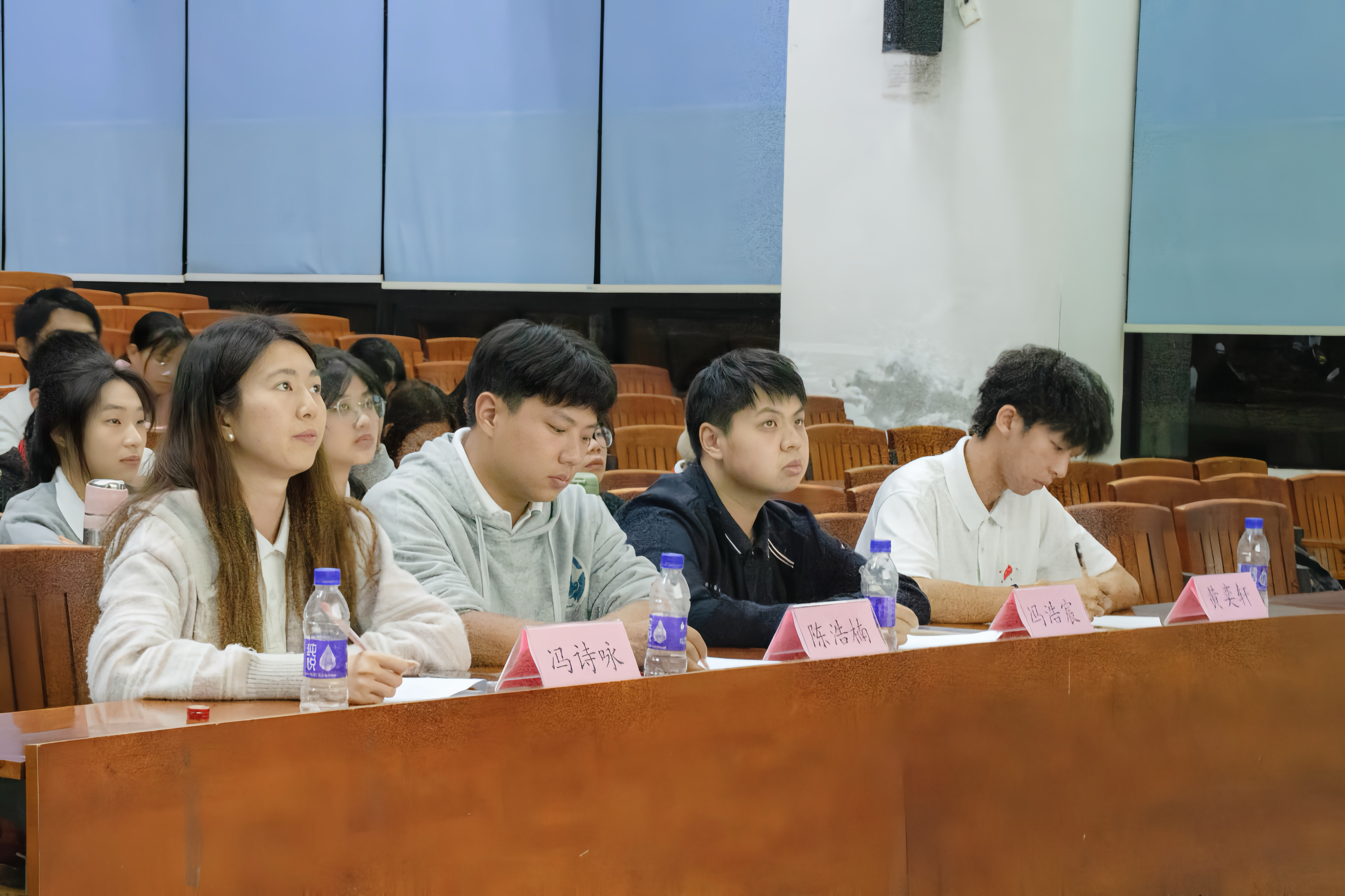 心理模拟授课大赛,学院心协指导老师冯浩宸与学院心协主席团成员陈浩楠、冯诗咏和黄奕轩同学出席并担任本次活动的评委嘉宾。