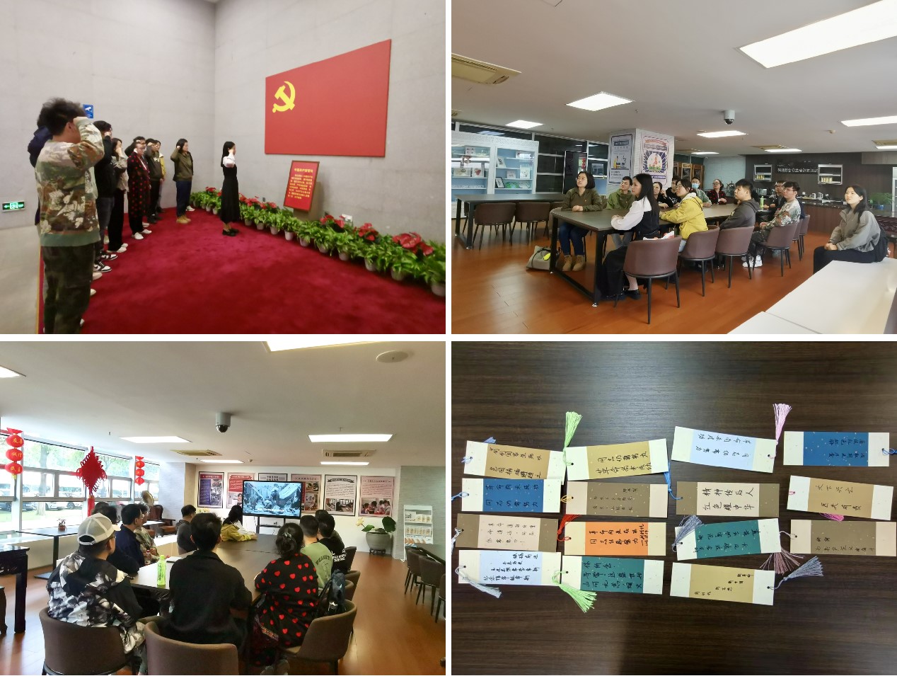 紧接着,支部党员在纪念馆党课学习教室,观看微党课之朱德将军在辛亥革命期间的英勇作为和革命觉悟。随后,支部党员根据参观学习感悟,制作红色书签,写下铭刻于心的标语,并就本次组织活动分享自己的学习体会。郭利平老师希望支部党员能牢记历史、珍惜当下的美好生活,在实现中华民族伟大复兴这场历史接力赛中跑出青年人的好成绩。