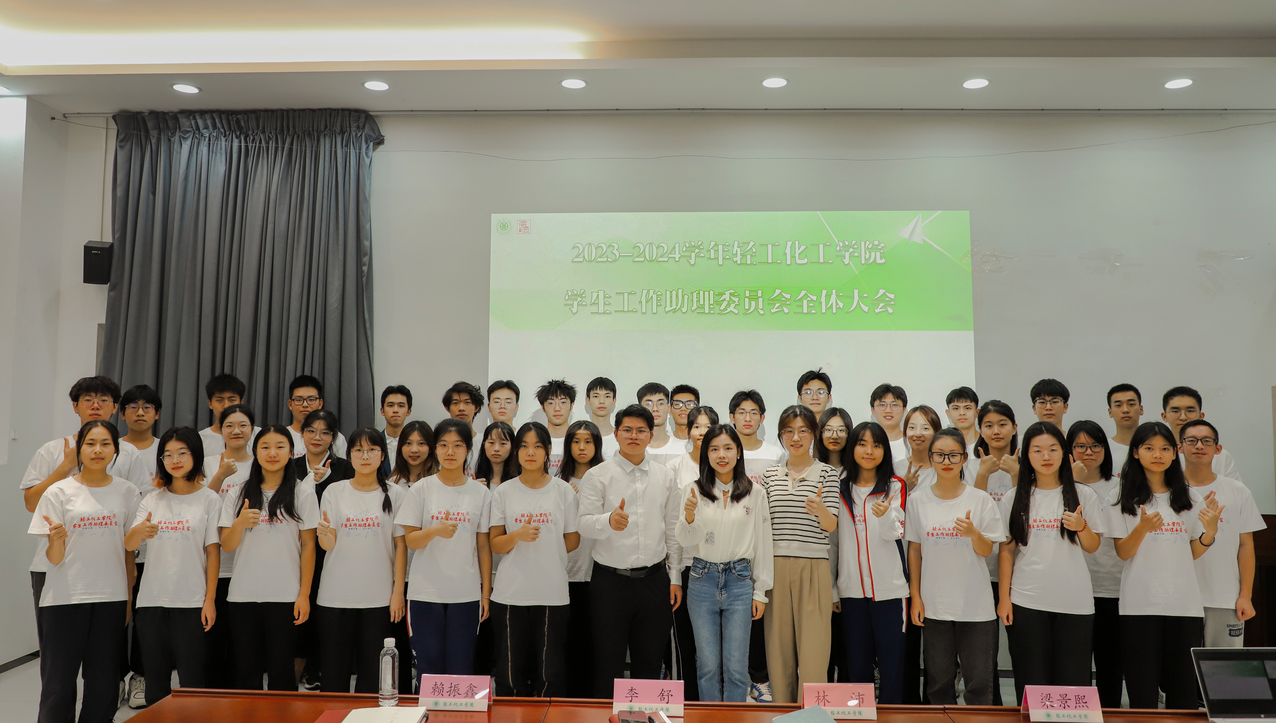 于工学四号馆一楼会议室召开2023-2024学年学生工作助理委员会全体大会。学院学工会指导老师林沛,辅导员李舒、赖振鑫老师,学院第九届学生工作助理委员会学生骨干代表梁景熙及第十届学生工作助理委员会全体成员参加本次会议。