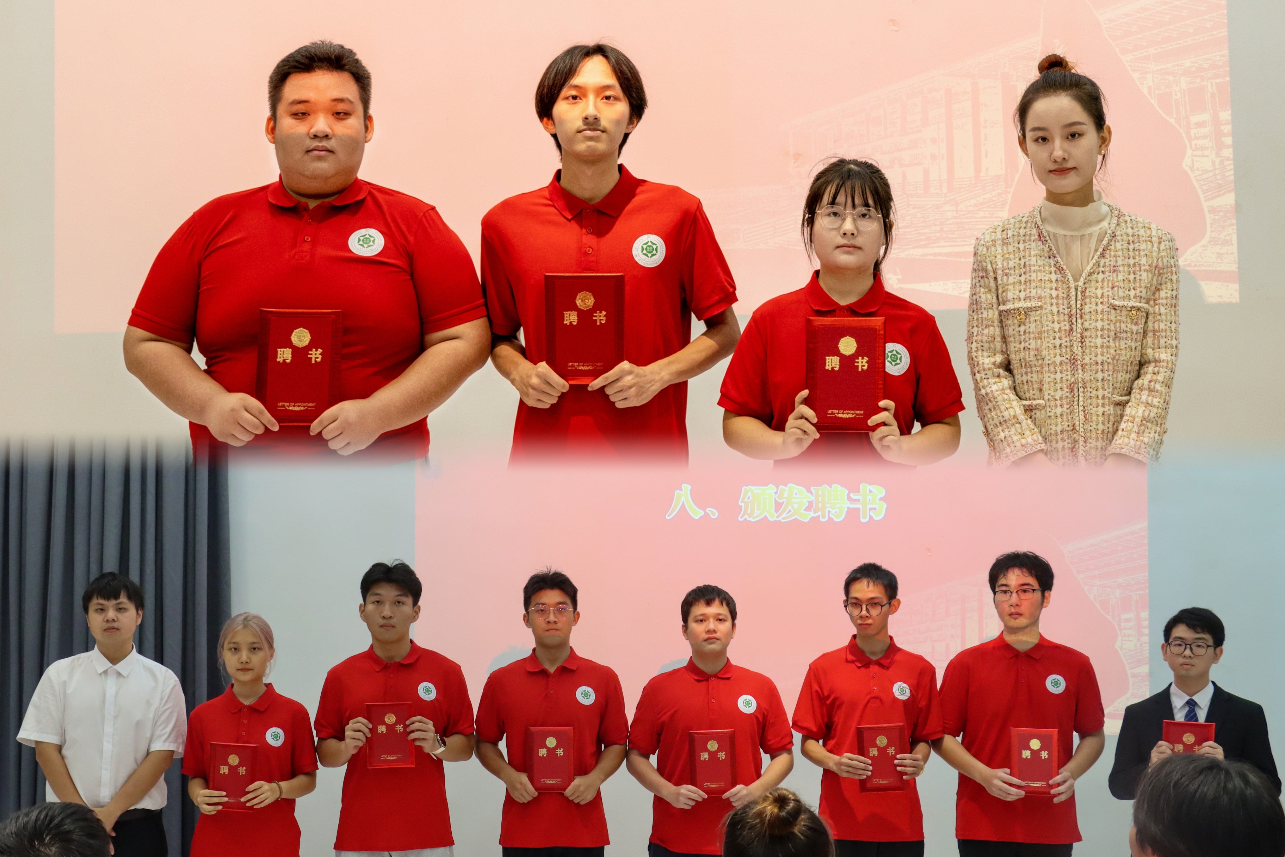 最后,主持人宣读新一届主任团成员以及各部门部长名单,由郭佳欣老师和冯浩宸老师颁发聘书。