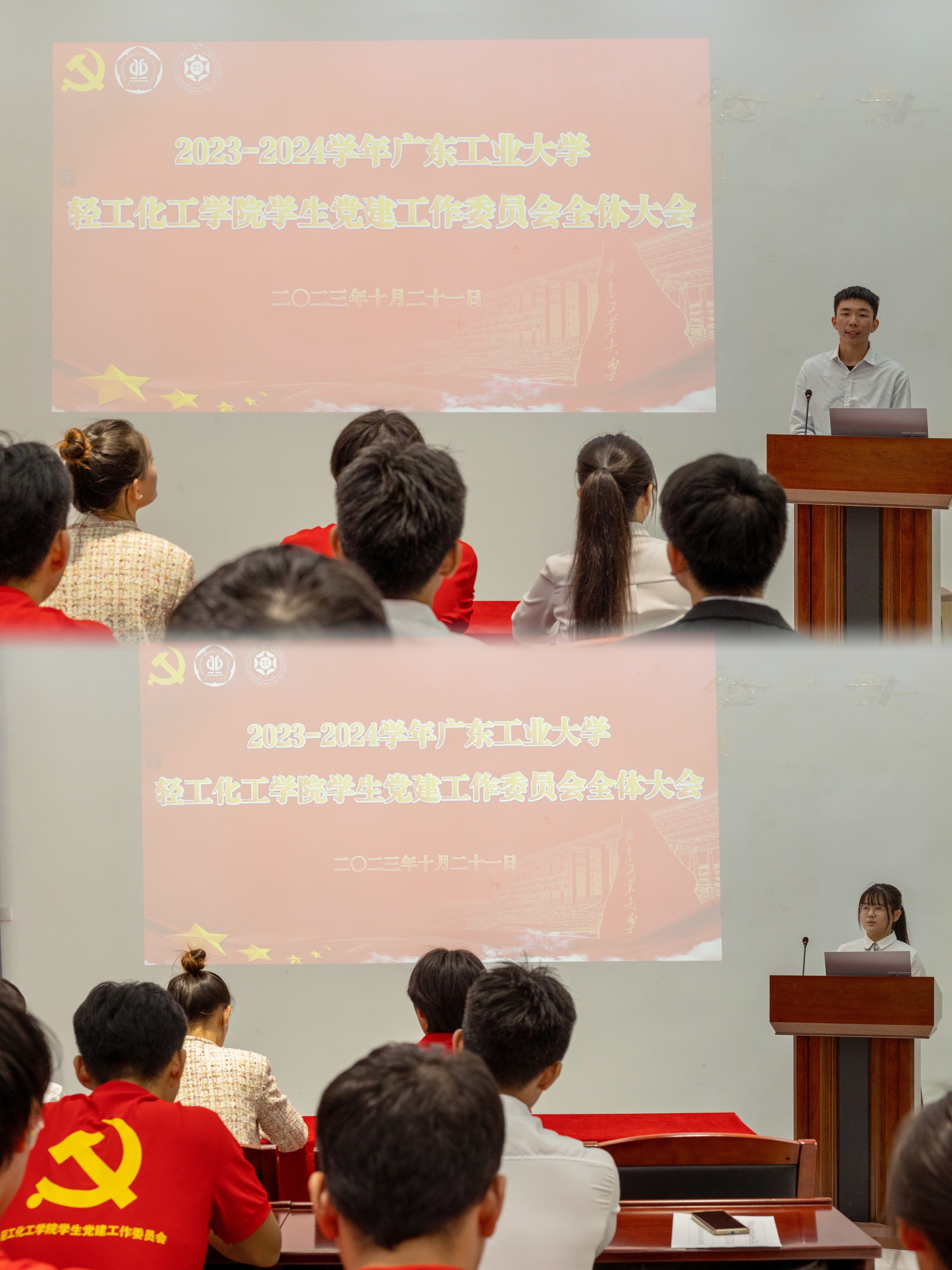 接下来,上一届主任团成员刘俊彬对过去一年党建进行的工作进行汇报,并希望新一届党建各部门要互相配合,凝聚团体力量,扎实做好各项工作。新一届主任团代表张晨曦作工作总结和未来展望,表示本学期工作将会聚焦于三个领域:夯实制度基础,完善组织建设;提升工作效能,发挥团队力量;探索品牌活动,吸引学生参与。