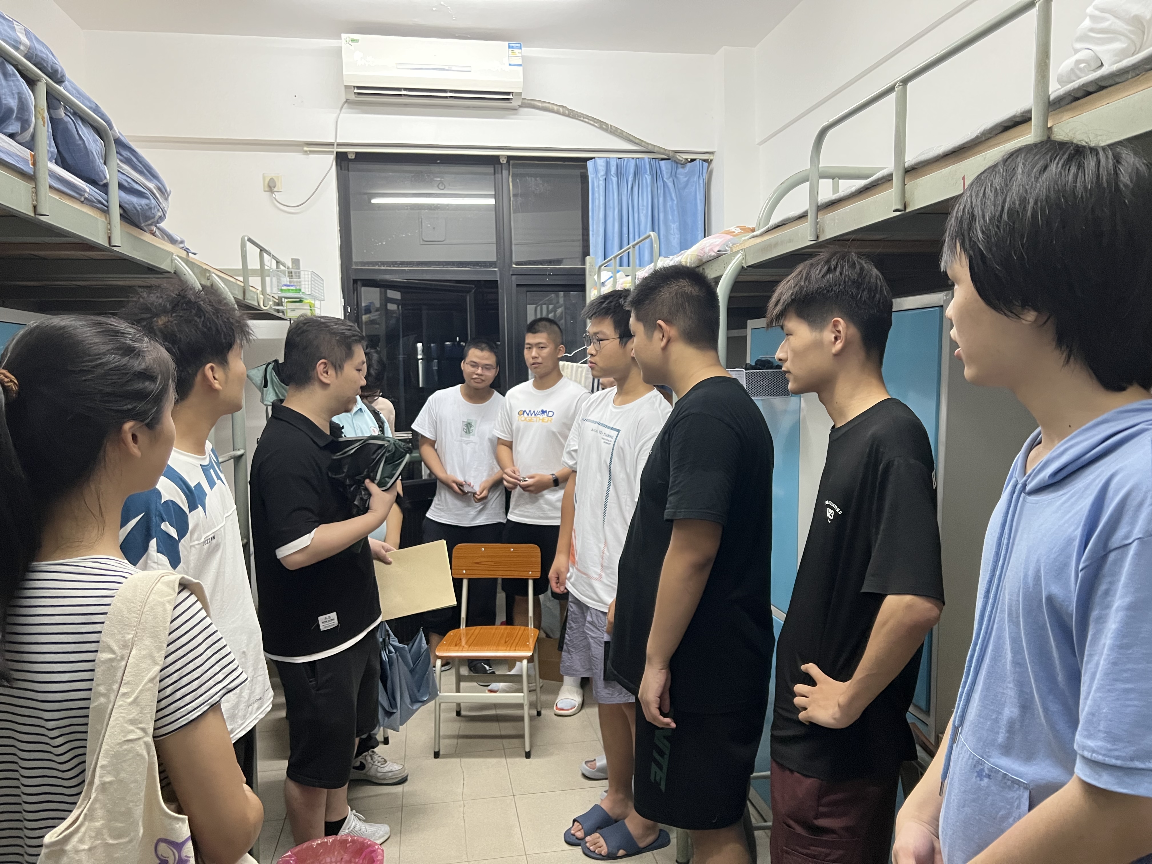 晚上,辅导员、班主任在新生学长的陪同下来到新生宿舍,了解同学们入学报到的情况,并再一次叮嘱大家要增强防范意识,谨防推销、诈骗,保护好自己的生命财产安全。
