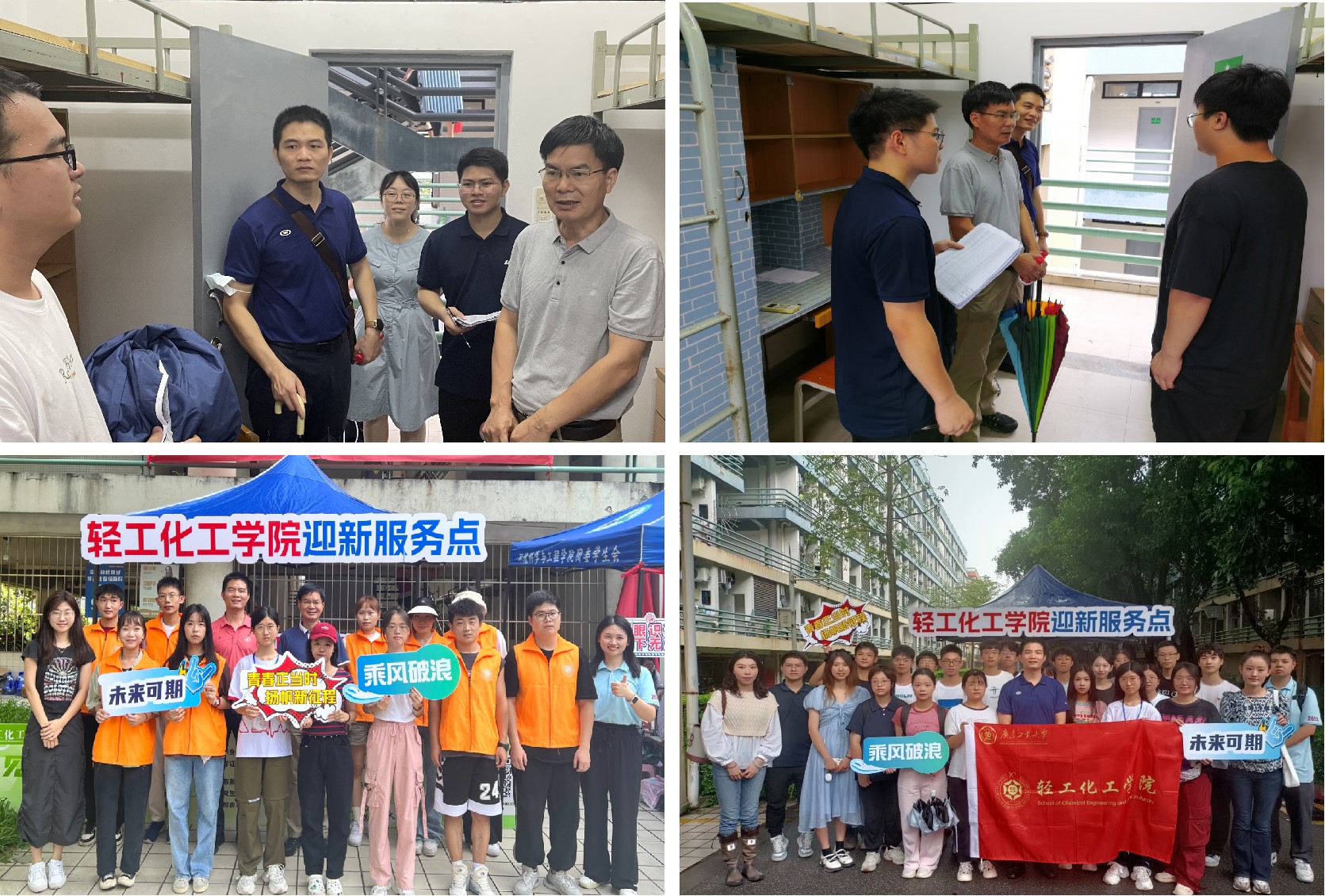 入学第一时间,学校学院领导老师便下沉一线,与2023级新生零距离接触,及时了解新生的需求,让新生感受到来自老师们的殷切关怀,为新生适应大学生活奠定了坚实的基础。我们全体“轻化人”将持续跟进因台风天暂未报到学生的情况,并开展好新生入学教育工作。愿2023级“轻”春少年扬理想之风帆,抵成功之彼岸!(文/冯浩宸、郭利平、张晨曦 图/学院新媒体中心、2023级新生学长)