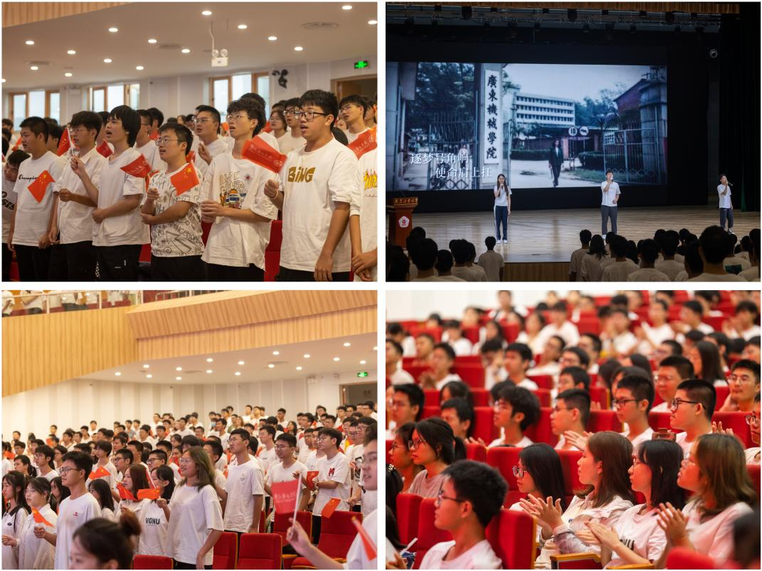 “风起岭之南,潮涌珠江畔。逐梦号角响,使命肩上扛…… ”全体师生一起倾情合唱校歌《逐梦》,青春之声飘扬在演艺厅,彰显出了轻化人奋进新时代的风范。“逐梦号角响,使命肩上扛。立大志,勇担当,工大学子美名扬。”全体新生以满腔热忱唱响自己的青春梦想,以饱满的精神迎接自己在广工大求学的崭新生涯。