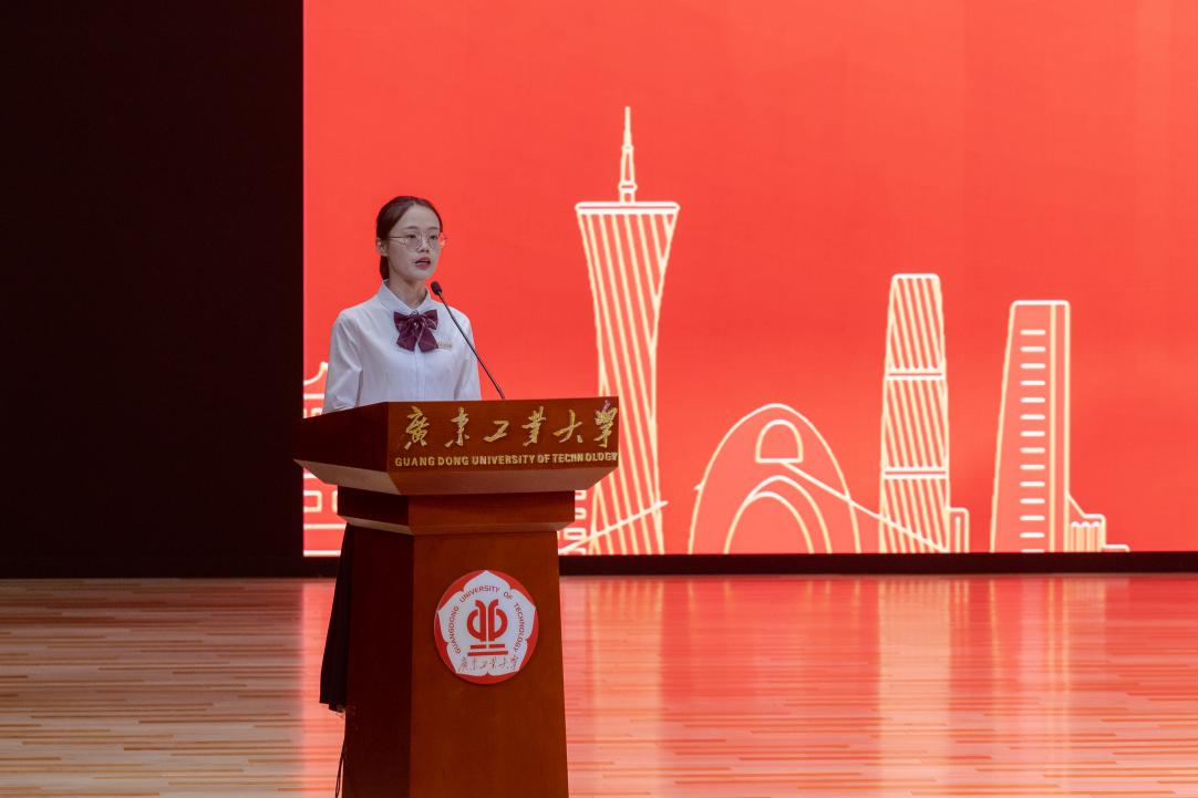 2021级化学工程与技术专业硕士生杨翼滢作为在校生代表向新生分享了她在广工求学时的感悟与体会,“作为轻化人,应当行而不辍、勇毅笃行,才能收获属于自己的精彩。”她认为在广工,只要努力,总会有展示自己的舞台;只要留心,总能有追求卓越的天地。她勉励在场新生们,作为助力广工大建成“双一流”高校的一份子,每个人都应当坚定科技报国之志,不断提高科研创新能力,为推动科技进步贡献自己的力量。