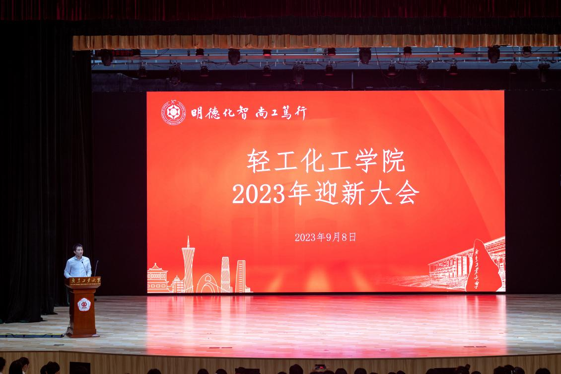 金秋送爽,学海新扬,履践致远,赓续前行。98日,轻工化工学院2023年迎新大会大学城校区文化活动中心举行。学院党委书记周东斌,副院长何军、郑育英、李成超、钟远红各系中心主任,教师代表,2023级班主任,全体辅导员,以及2023级全体本科新生、研究生新生参加了本次活动。本次大会由学院党委副书记杨刚主持。