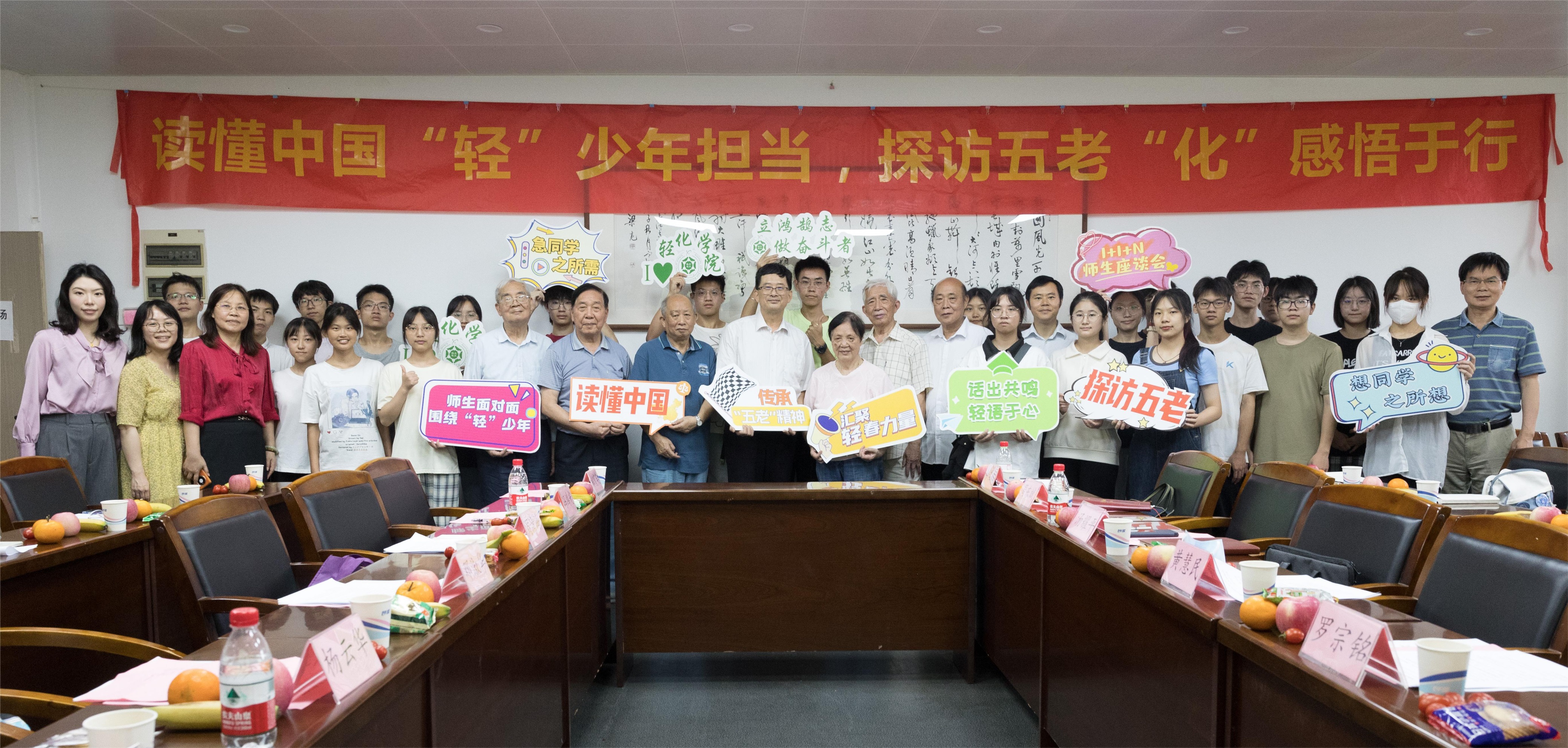 同学们与6位“五老”代表面对面亲切交流老教师们饱含深情、言辞恳切,通过比较过去和现在办学软硬件条件上的巨大进步,回顾学校65年的高速发展,感慨国家在社会、经济、科技和文化等方面的高速发展,希望同学们热爱自己的专业,珍惜大学时光夯实专业基础,开阔视野,抓住专业的“生长点”,勇于创新,力求成为“有准备的人。老教师们还回顾了自己的入党初心,是奋斗精神和对党对国家的热爱让他们在受挫时也锲而不舍拼尽全力直到成功。“一个人只要下定了决心,总是可以做好的”,原化工系系主任罗宗铭教授如是说。老教师们寄语轻化学子一定要有崇高的理想信念,坚定自身的责任感与使命感,不断开阔思维、保持品德高尚,努力成为更好的自己。