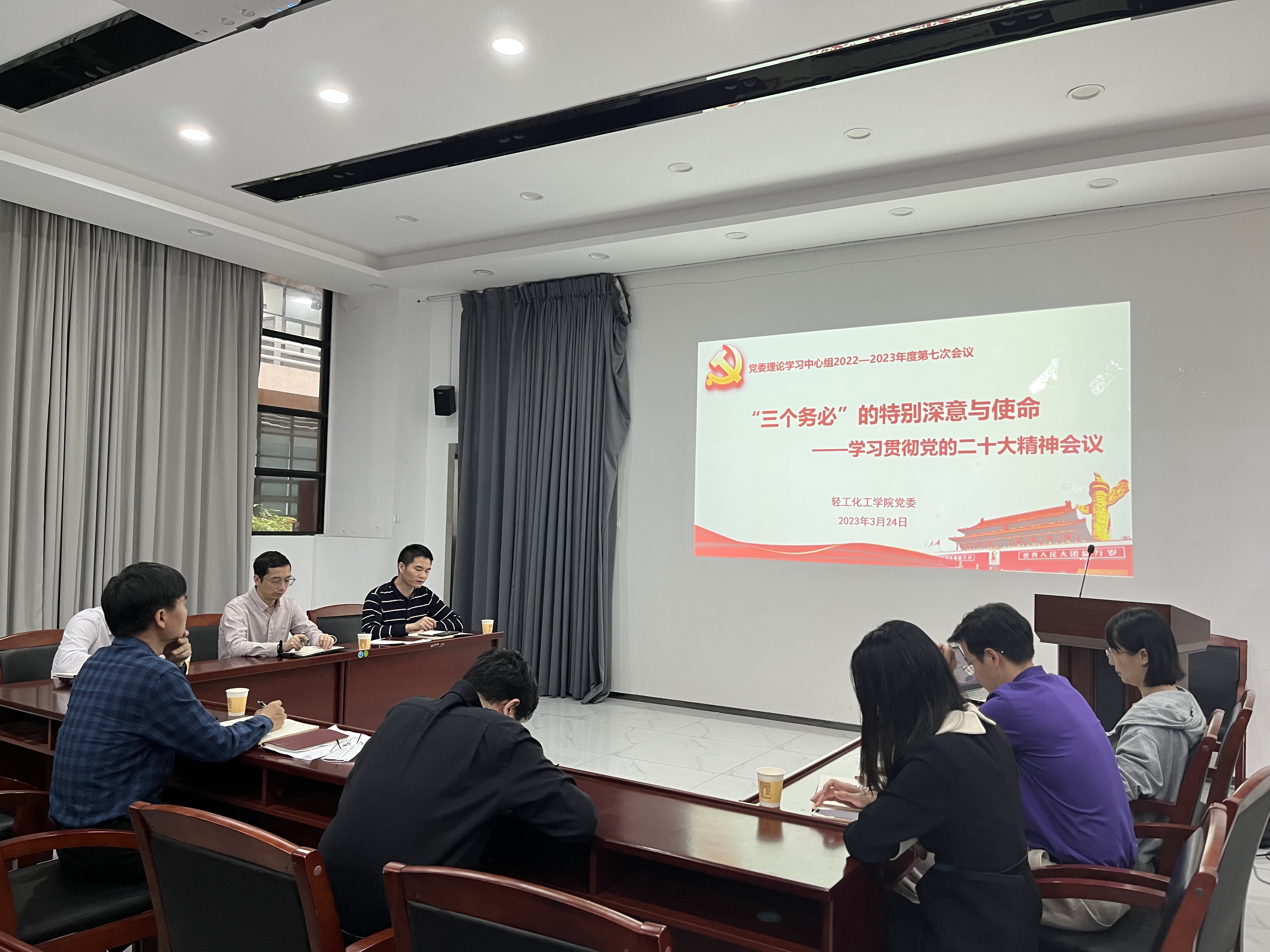 3月24日上午,轻工化工学院党委在工学四号馆102会议室召开理论学习中心组学习会议,集中学习习近平总书记关于“三个务必”的重要论断。学院党委书记周东斌主持会议,学院党委理论学习中心组成员参加会议。